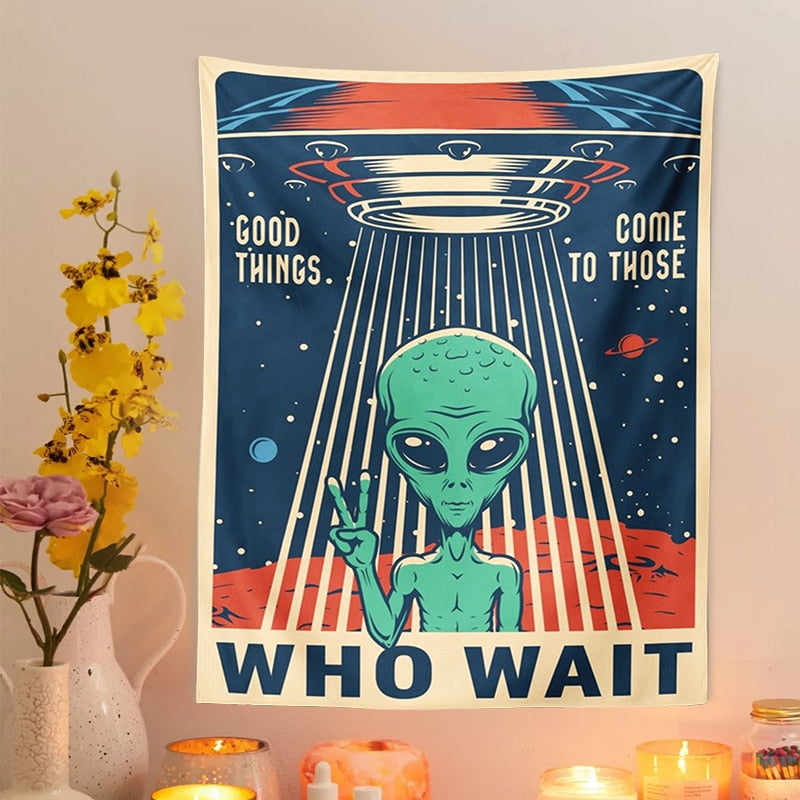 Alien Tapestry Outer space Wall Hanging macrame hippie Art Wall Hanging Tapestries poster for Living Room Home Dorm Decor print
