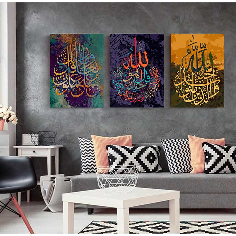 Allah Muslim Islamic Calligraphy Canvas Painting on the Wall Posters and Prints Wall Art Picture for Ramadan Mosque Home Decor