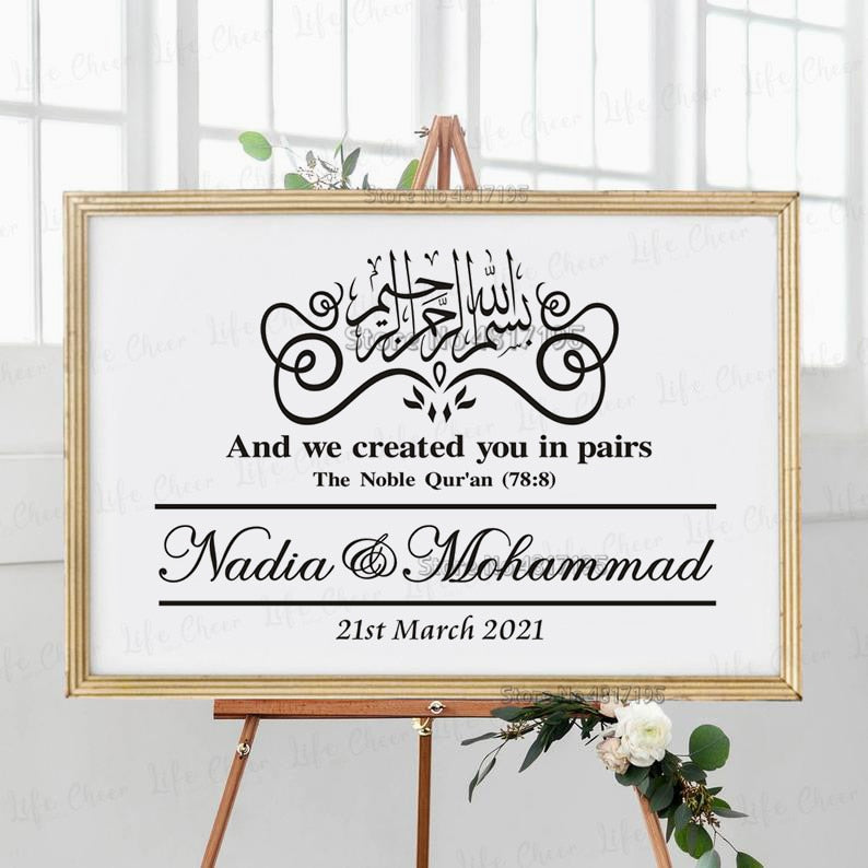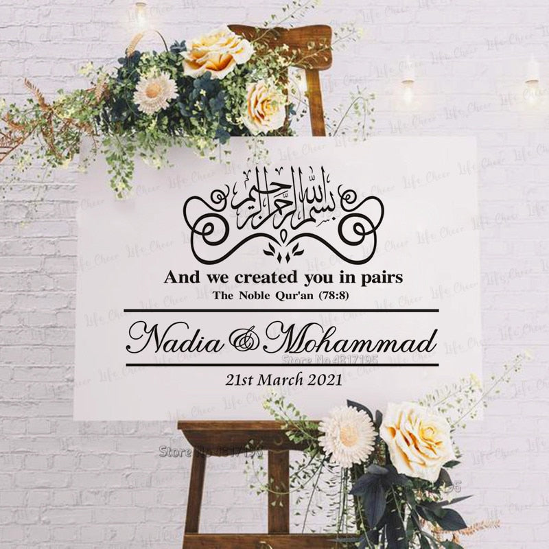 Arabic Welcome Decal Custom Wedding Welcome Sign Sticker Muslim Vinyls Art Islamic Wedding Sign Decal Custom Names Date Decor
