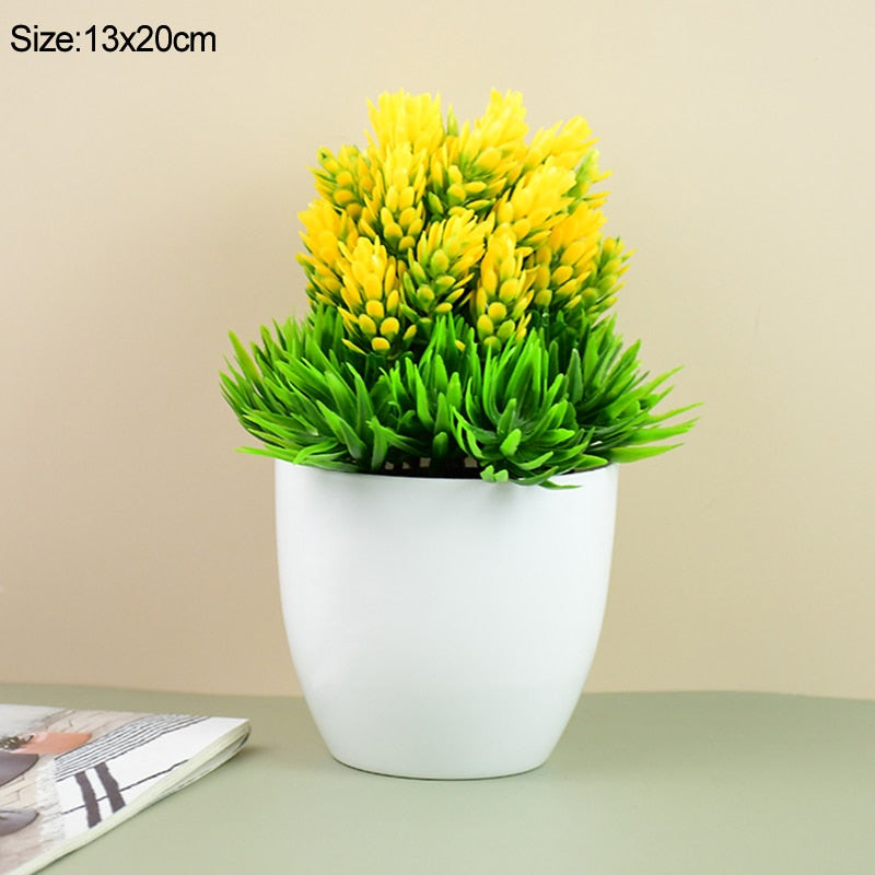 Artificial Plants Potted Green Bonsai Small Tree Grass Plants Pot Ornament Fake Flowers for Home Garden Decoration Wedding Party