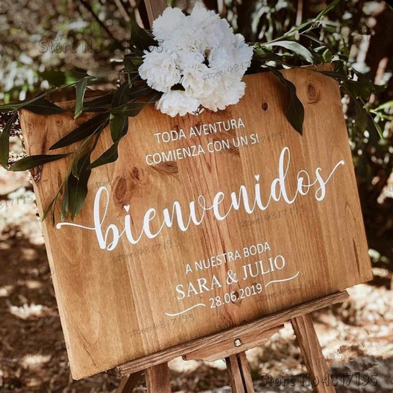Bienvenidos a nuestra boda Sign Wedding Vinyls Sticker Personalized Texts Wedding Board Frame Decals Customized Party Stickers
