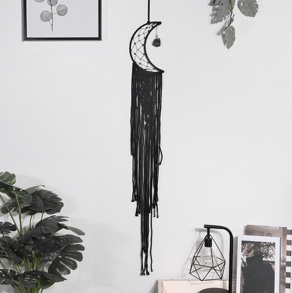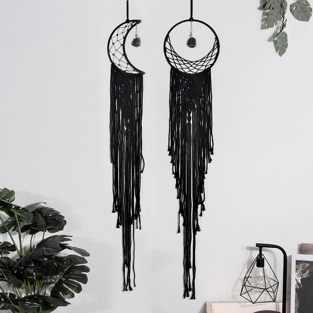 Black Sun Moon Dream Catcher Nordic Macrame Dreamcatcher With Crystal Wall Room Home Decor Yard Garden Bedroom Decoration