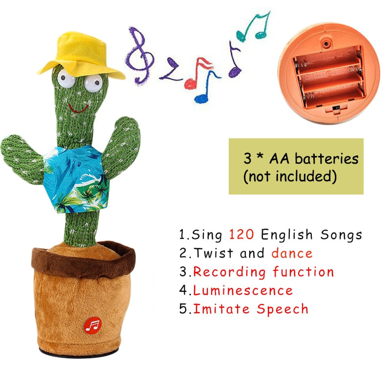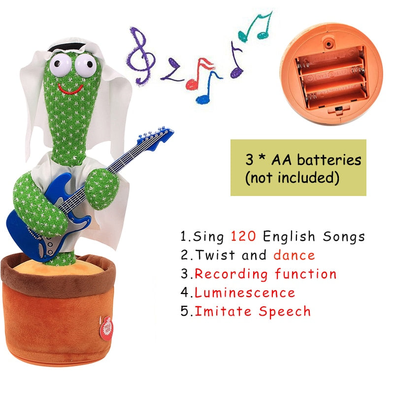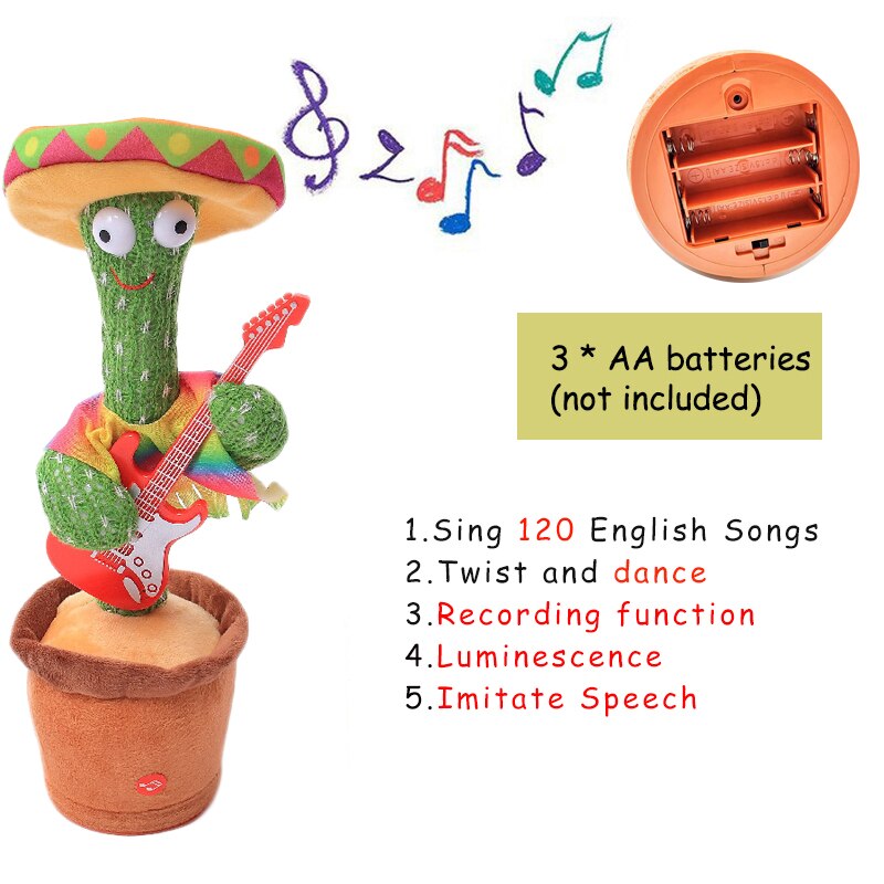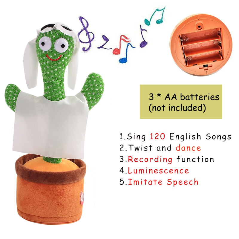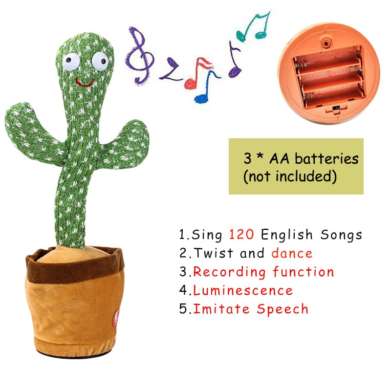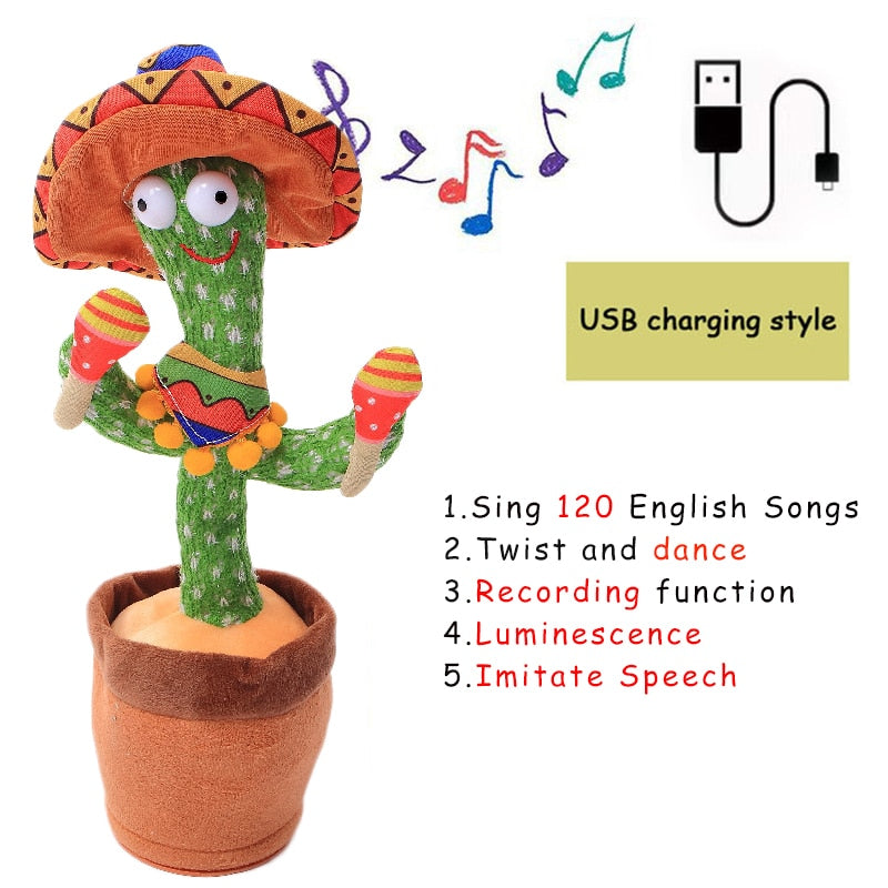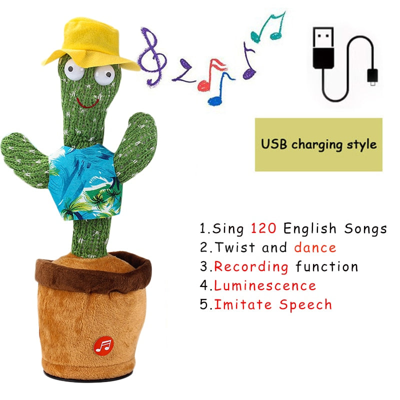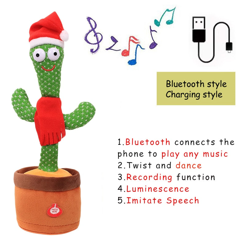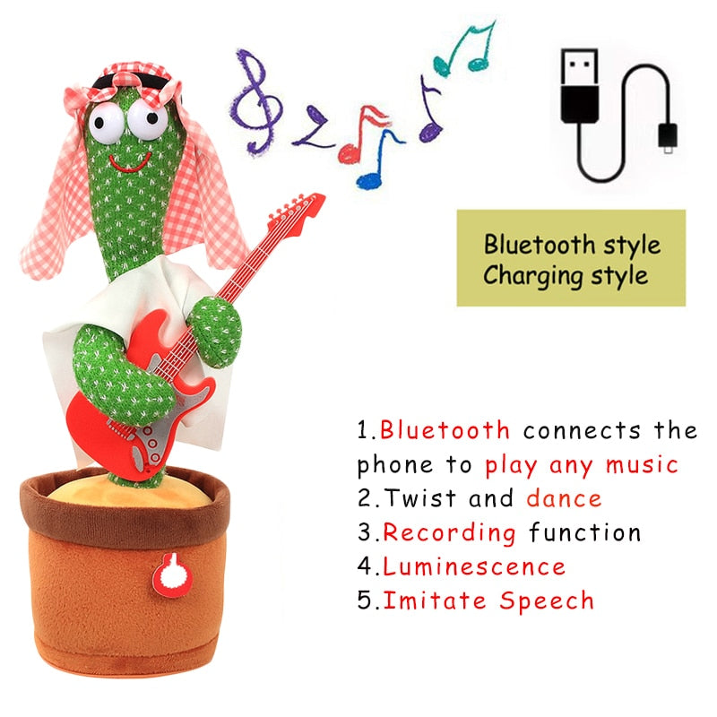 Bluetooth Dancing Cactus Talking Toy Electronic Plush Toys Sing Record Lighten Battery USB Charging Early Education Funny Gift