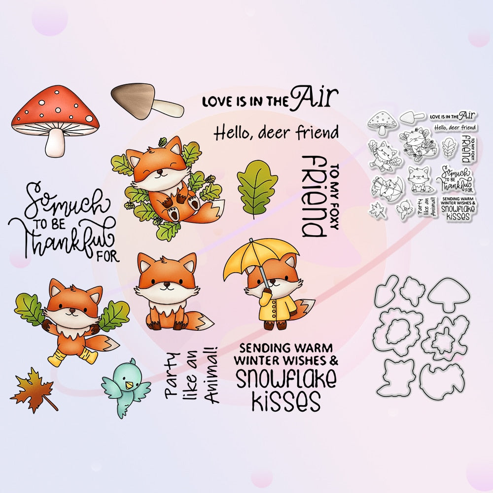 Cartoon Forest Fox Life Cutting Dies Clear Stamp Nature DIY Scrapbooking Cut Dies Stamp For Paper Cards Making Stecil Decor