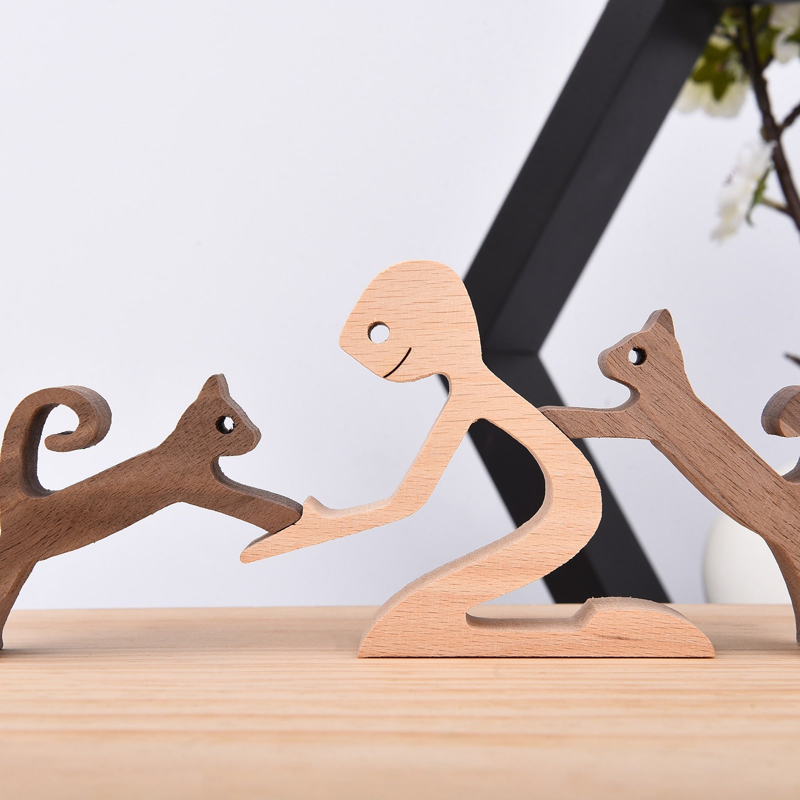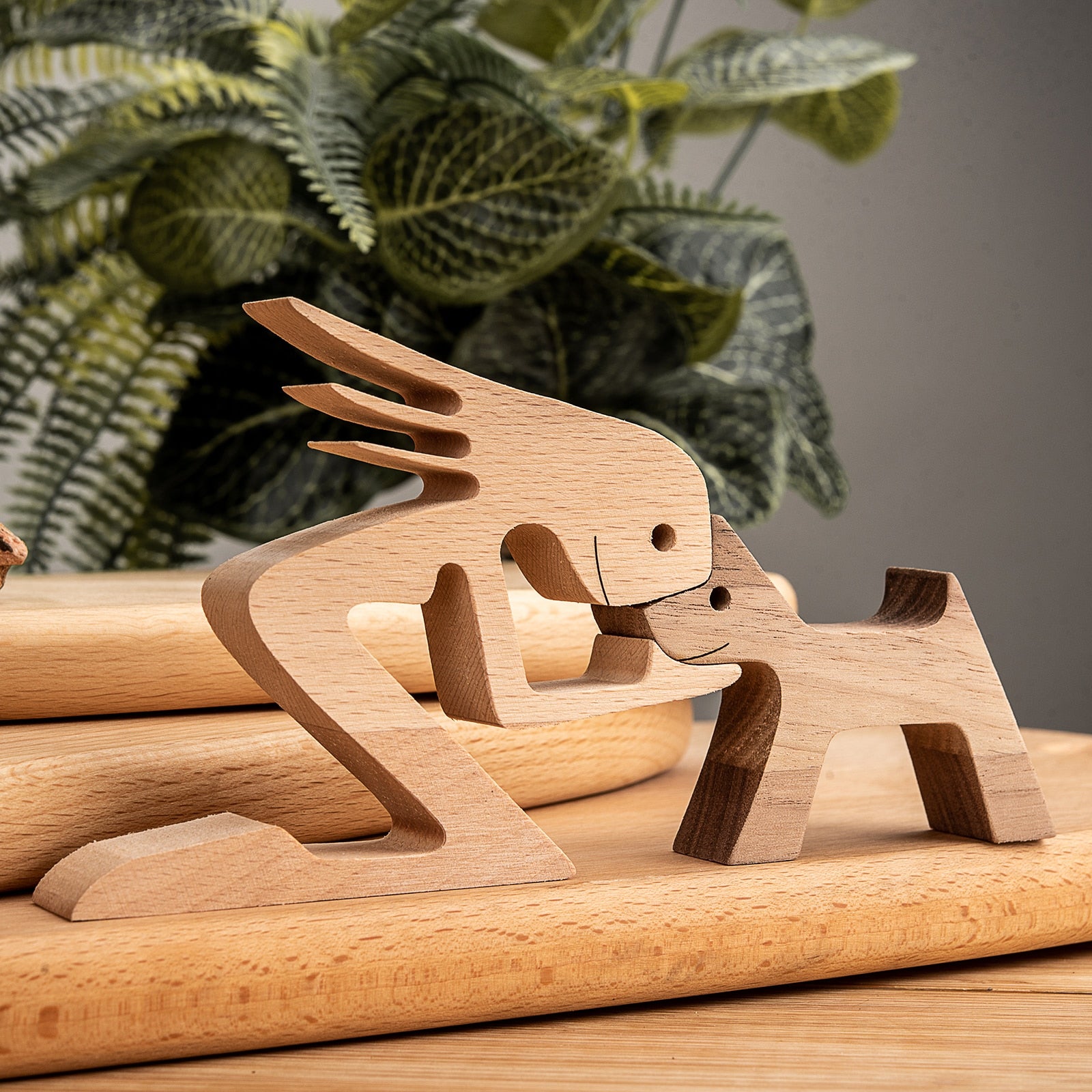 Carving Wooden Ornament Decorations Wood Dog Figurines Home Decor Dog Statue Women Miniature Home Decoration Crafts Office Table