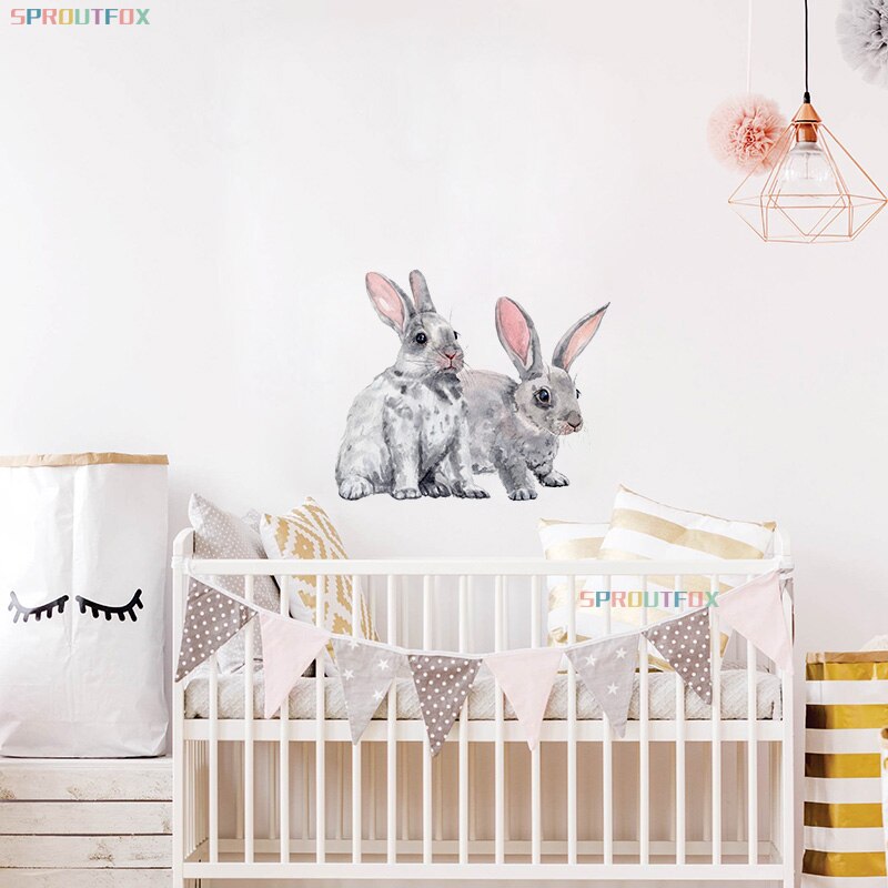 Color Wall Stickers For Kids Rooms Rabbits Christmas Home Decoration Accessories 2021 Bedroom Girl Vinyl Decorative 30*40cm