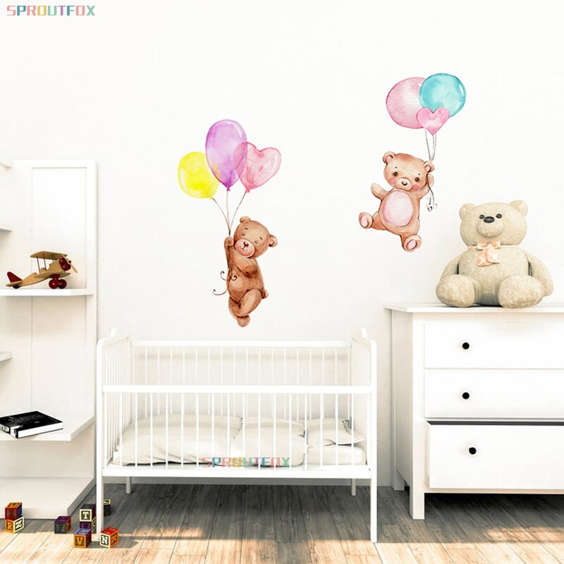 Colorful Balloons Vinyl Decorative Wall Stickers For Kids Rooms Cute Bear Children for Wall Stickers Home Decor Living Room