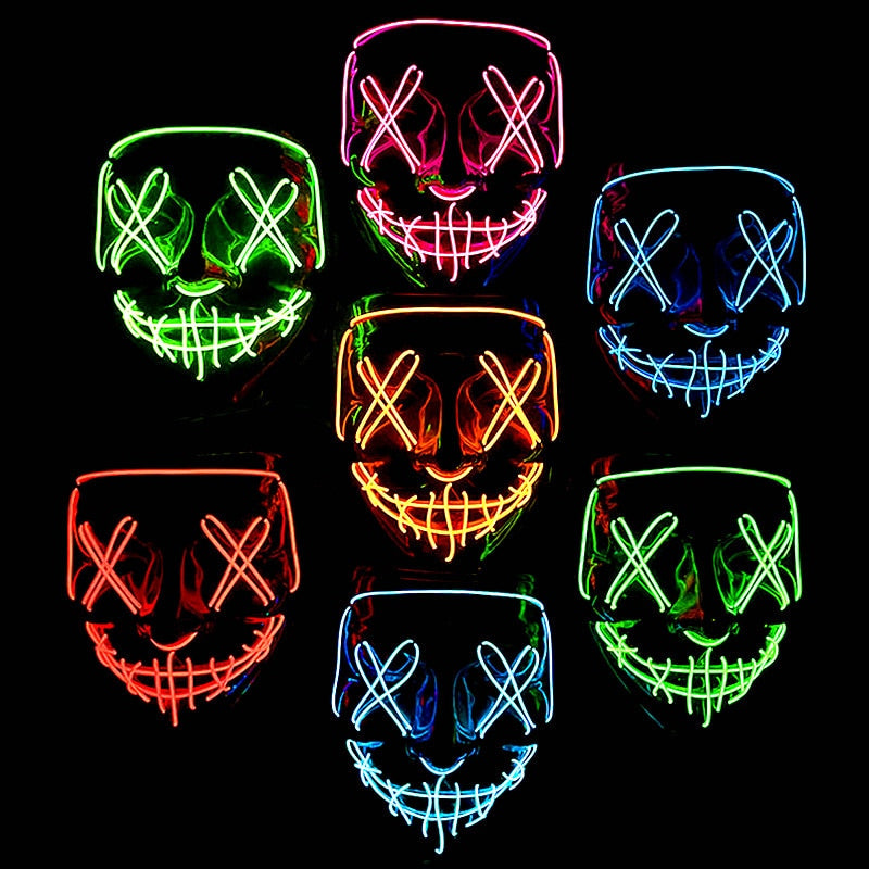 Cosmask Halloween Party Led Mask Masque Masquerade Neon Light Glow In The Dark Mascara Horror Glowing Masks Costume Supplies