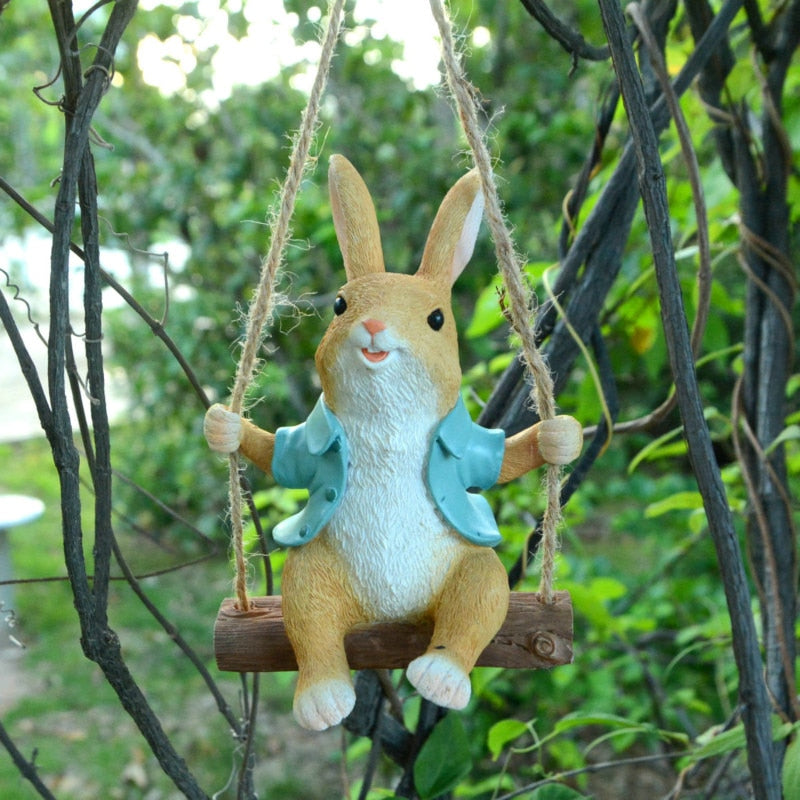 Creative Bunny Dragon Figurines Swing Animal Hanging Ornaments Fairy Garden Micro Landscape Pendant Resin Craft Scene Decoration
