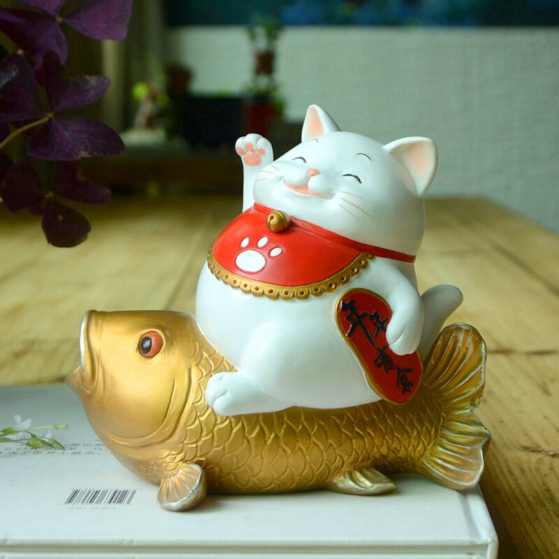 Creative Maneki Neko Piggy Bank Waving Hand Lucky Cat Gifts Home Decoration Business Gift Car Ornament Resin Craft