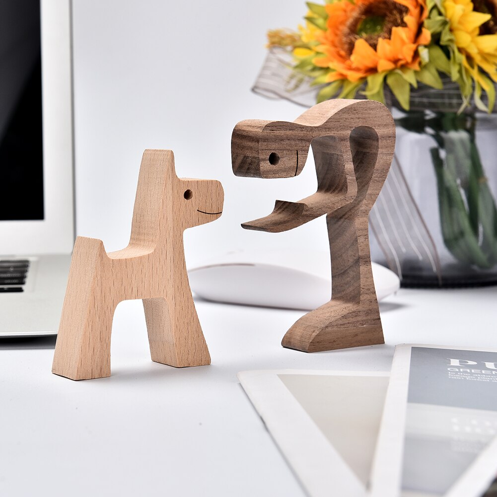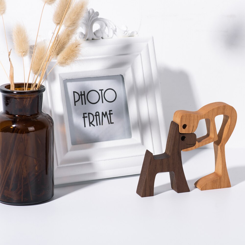 Creative Wooden Dog Figures Table Decorarion Men and Dog Statue Art Craft Carving Miniature Decoration Home Decor Desk Ornaments