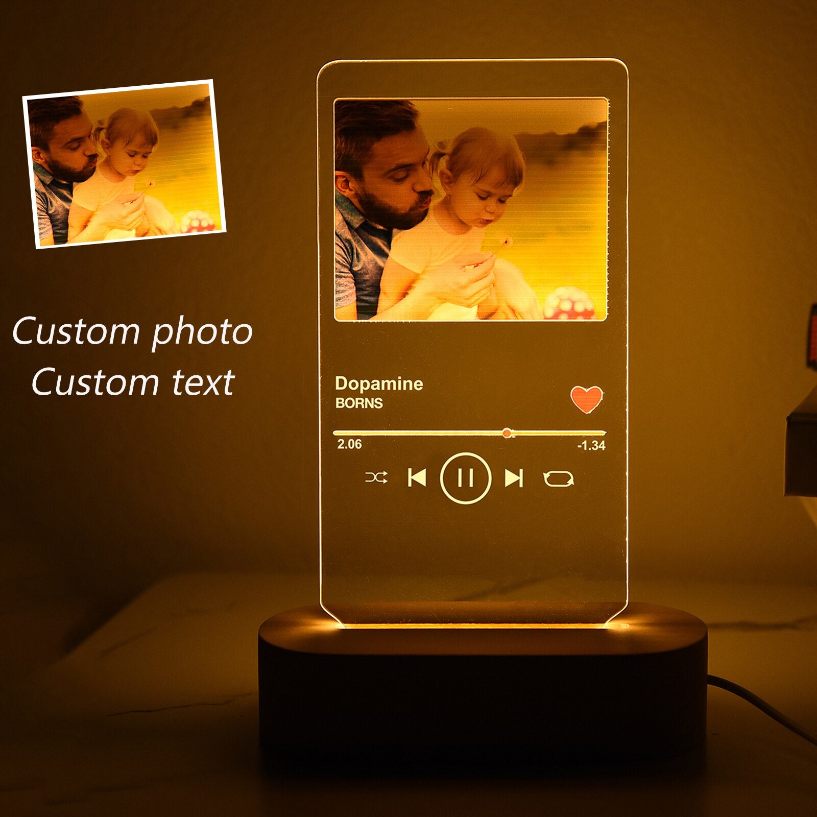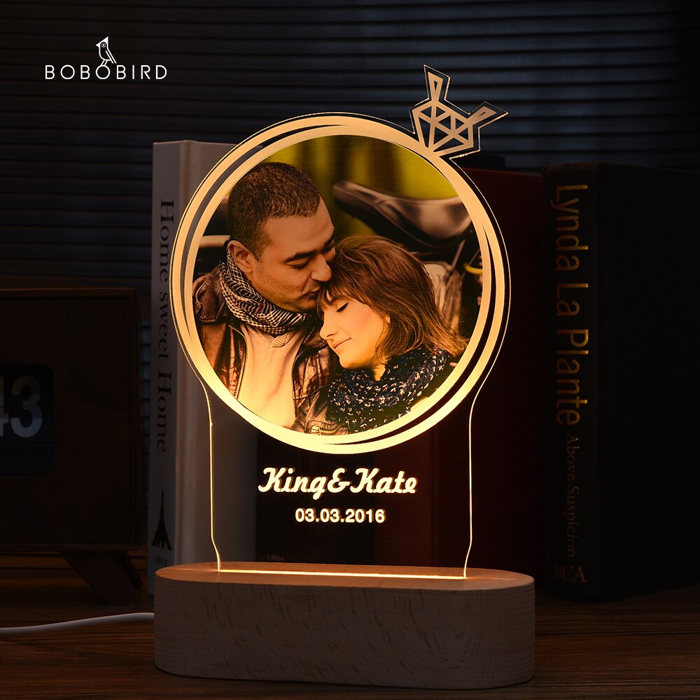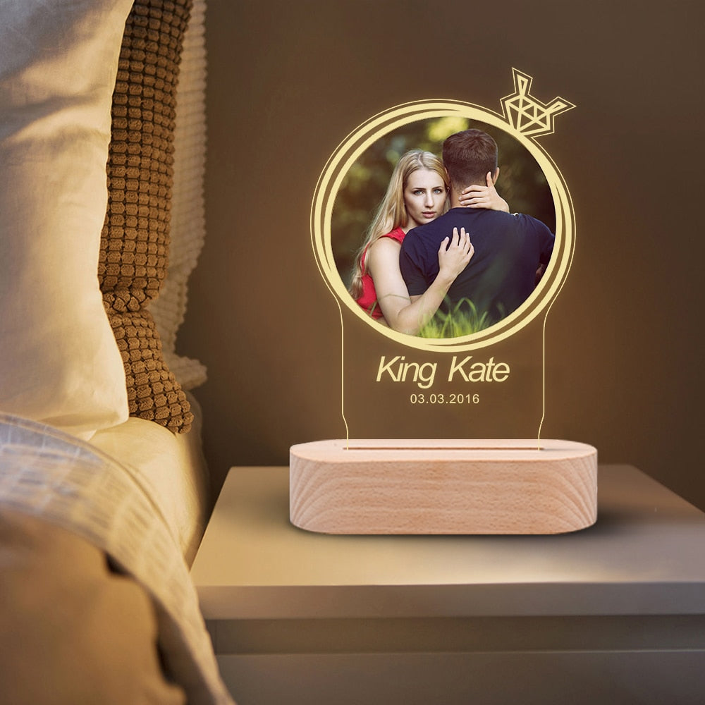 Custom Photo Frame USB With Light Creative Wooden Base Personalized Picture Living Room Bedroom Decoration Anniversary Gifts