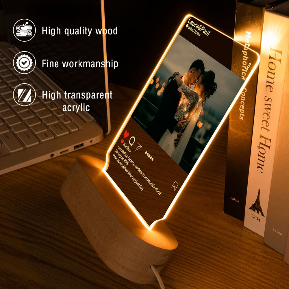 Custom Photo Frame With 3D Lamp Customized Photo Frame With Light Living Room decoration For Wedding Anniversary Birthday Gifts