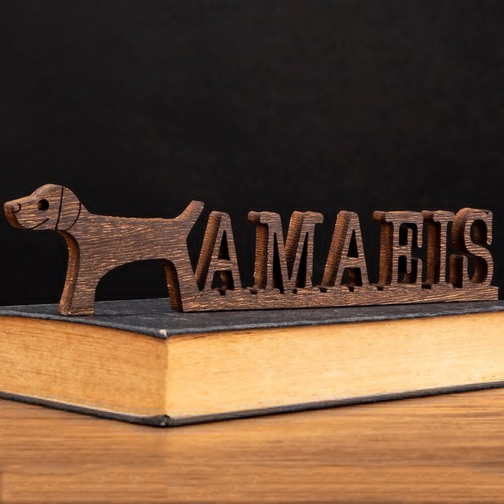 Customizable Dog Wood Names Figurines Home Decor Personalized Puppy Carved Ornament For Home Decoration Modern