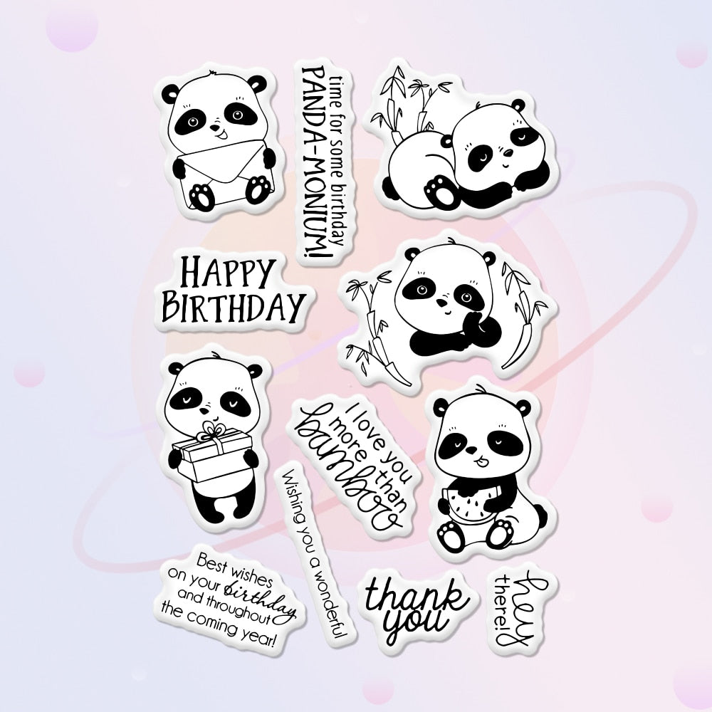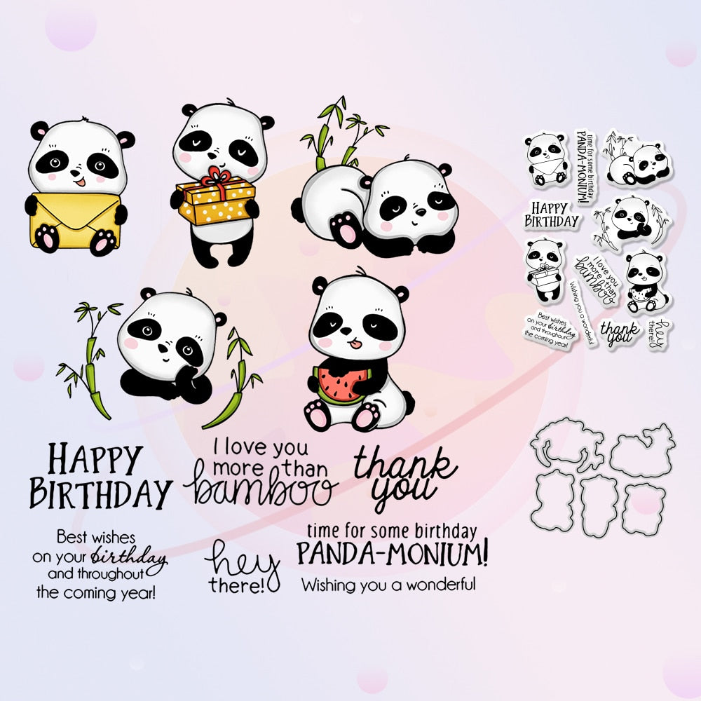 Cute Panda Bamboo Cutting Dies Clear Stamp Set Happy Birthday DIY Scrapbooking Decor Metal Dies Stamps For Handcraft Cards Gifts