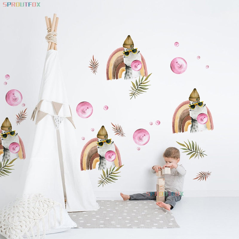 Dinosaur Rainbow Nursery Wall Stickers For Kids Rooms Decoration Children's Room Wallpaper Stickers On The Wall Vinyl