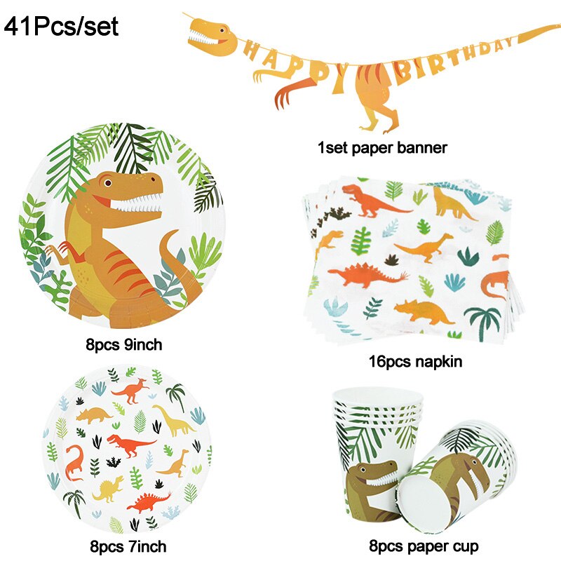 Dinosaur Theme Disposable Tableware Happy Birthday Banner Dinosaur Birthday Decorations Safari Jungle Party Supplies Baby Shower