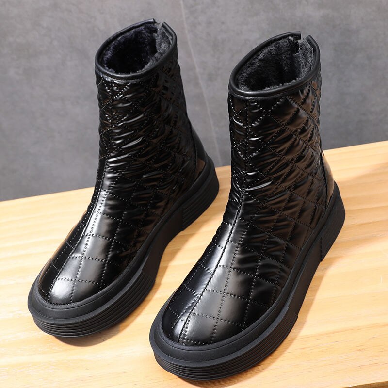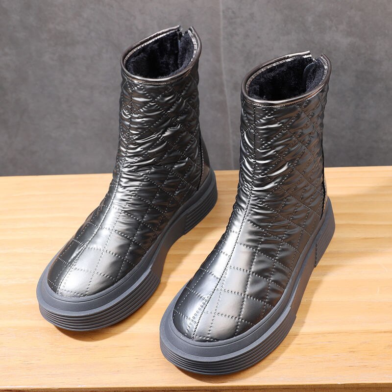 Down Cloth Snow Boots,Women's Shoes for Winter,Waterproof,Thick Sole,Short Boot,Round Toe,Back Zip,Female Footware,BLACK,SILVER