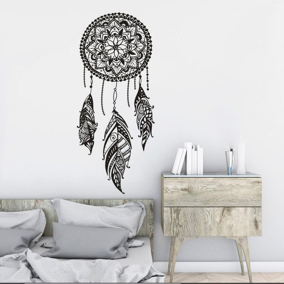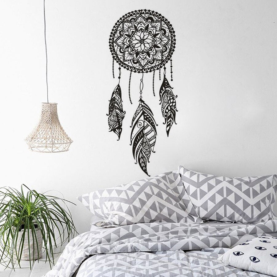 Dreamcatcher Vinyl Wall Sticker Indian Pattern Decor For Bedroom Mandala Bohemian Vinyl Wall Decal Dream Feathers Mural AZ126