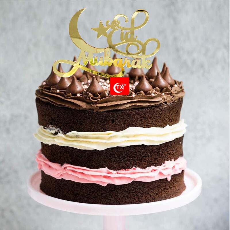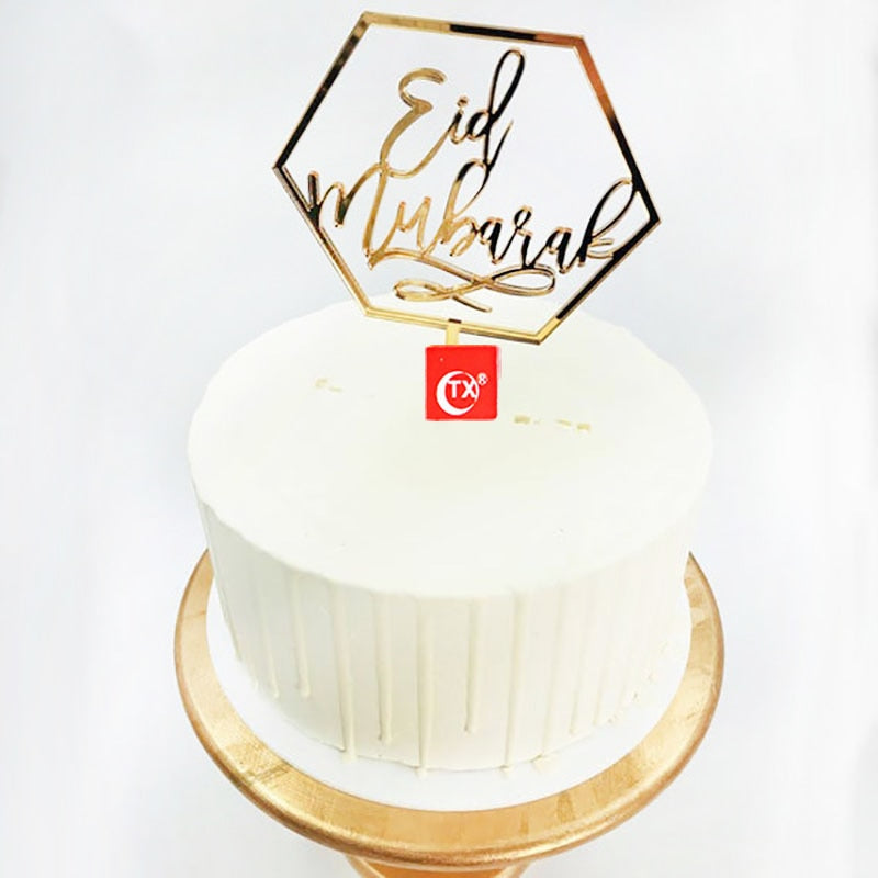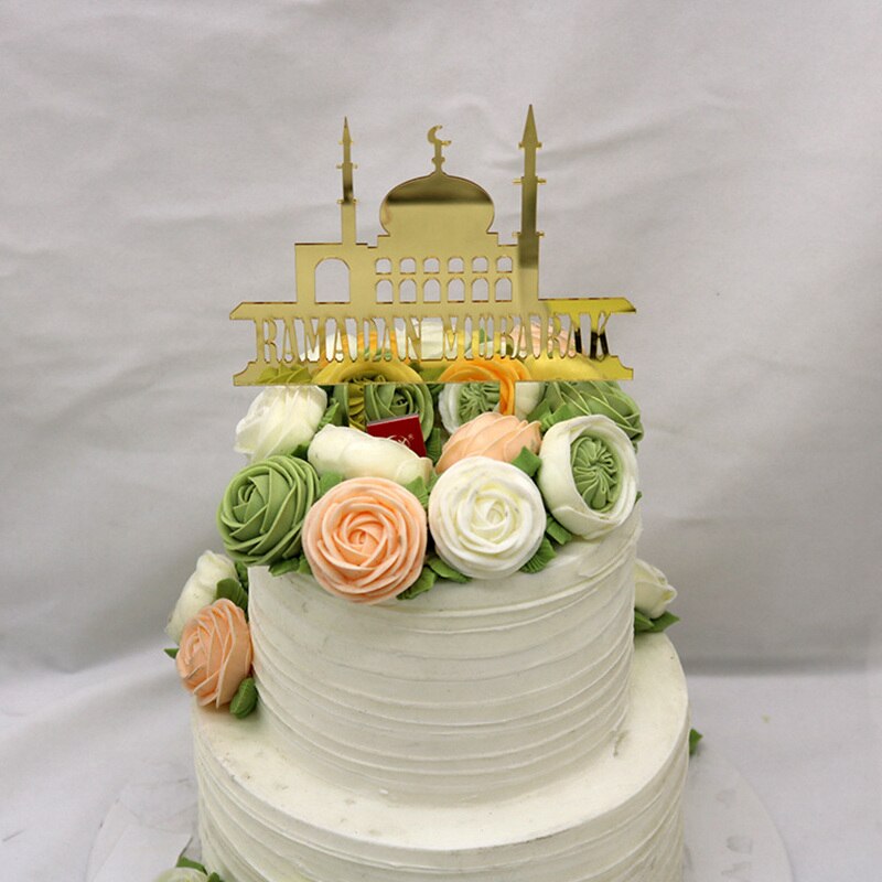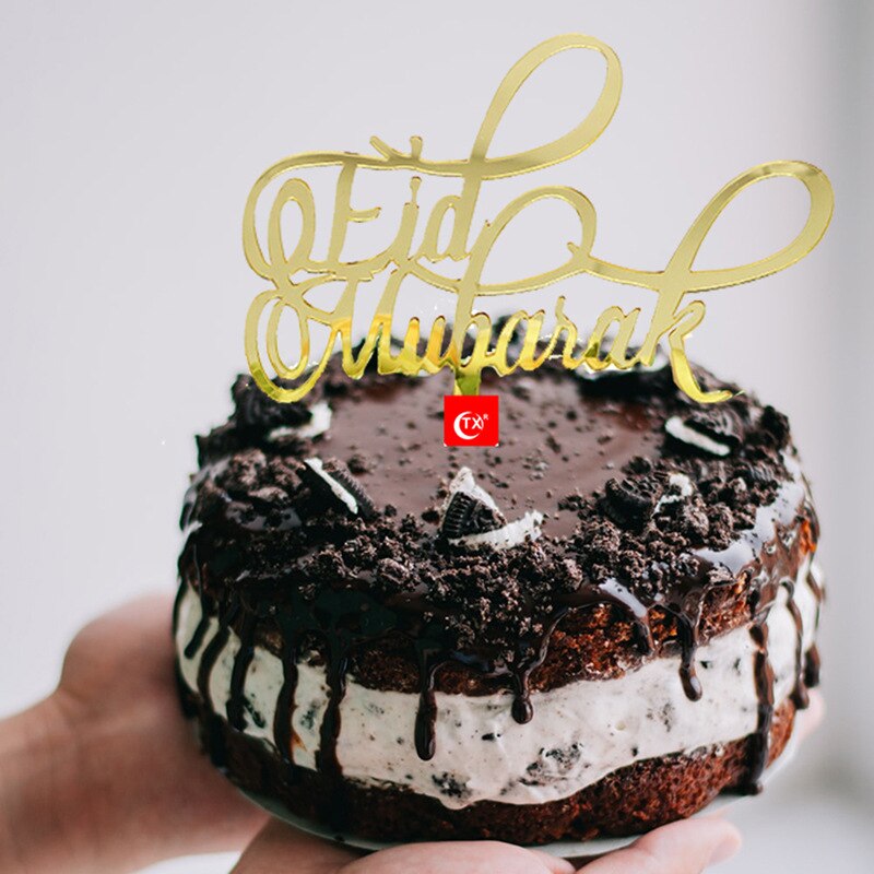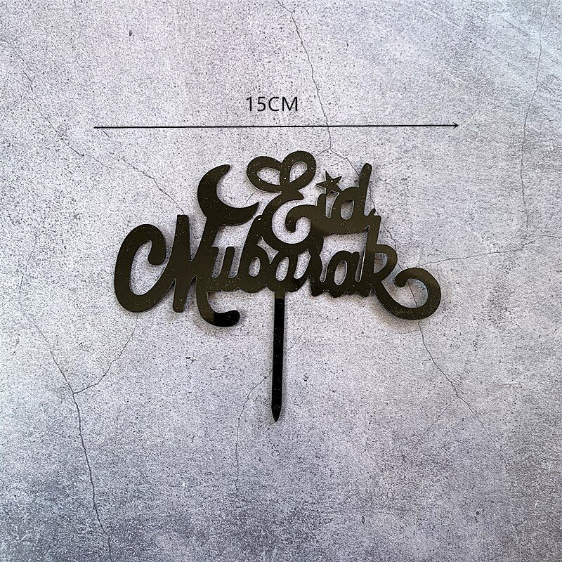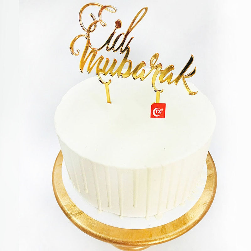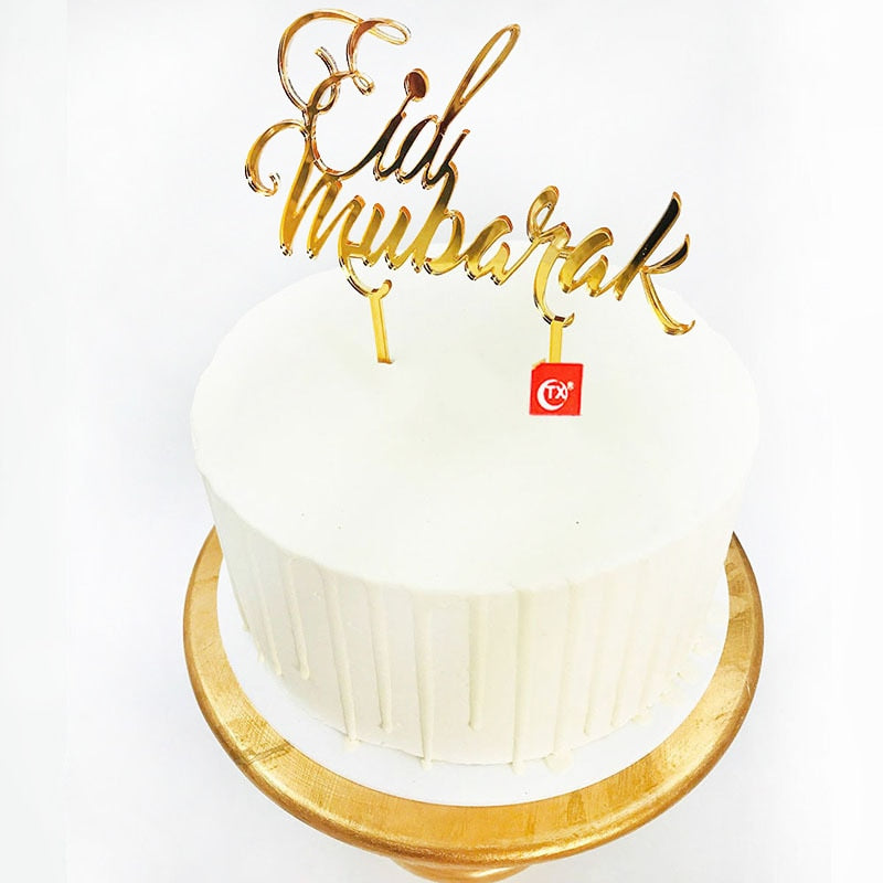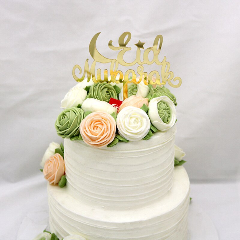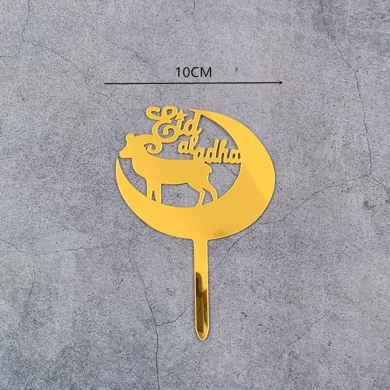 Eid Mubarak Cake Topper Gold Acrylic Cupcake Topper for Hajj Ramadan Mubarak Kareem Cake Decorations Muslim Baking Cake Supplies