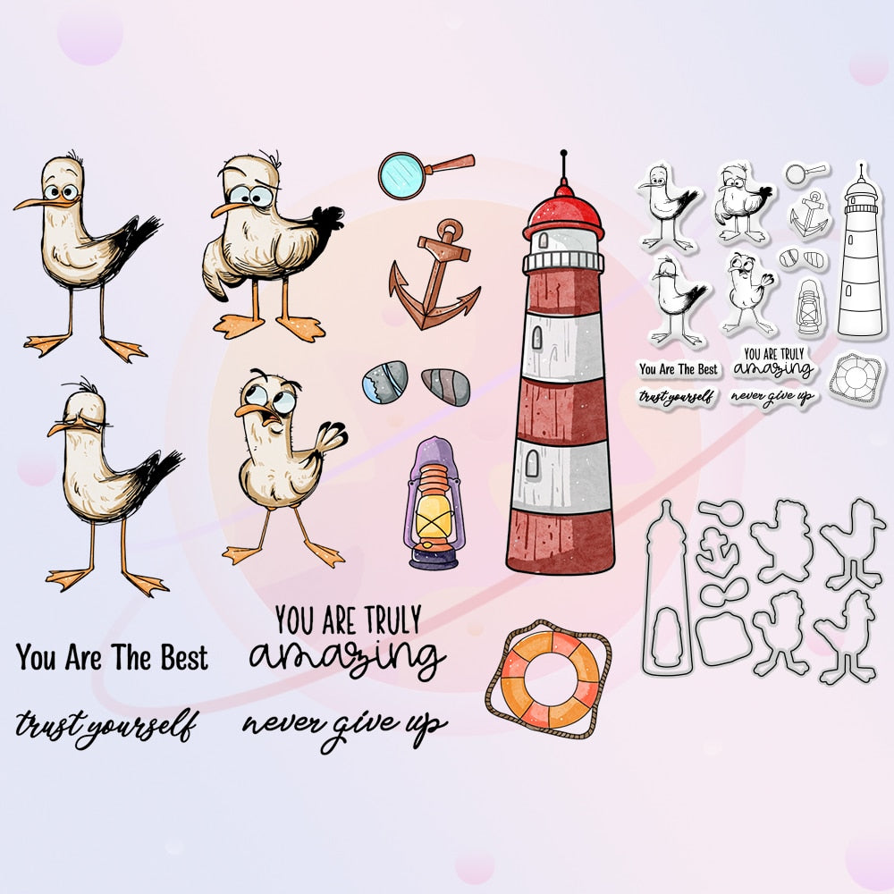 Farm Funny Ducks Lighthouse DIY Metal Cutting Dies Clear Stamp Scrapbooking Cut Dies Silicone Stamp Stencil For Decor Card Craft