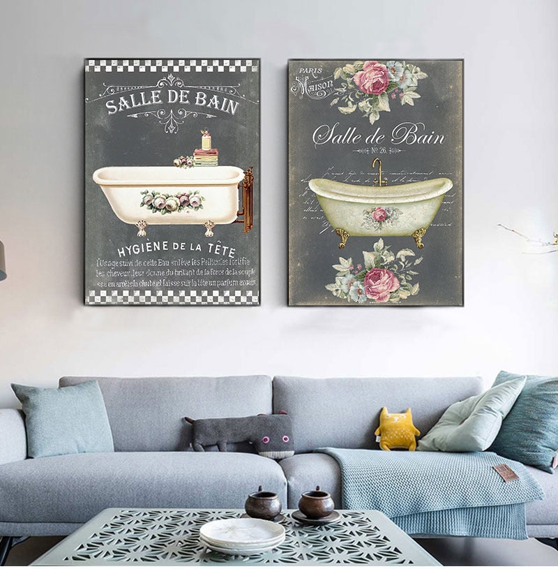 French Bathroom Decoration Paintings Print Vintage Posters Salle de Bain Le Bain Chalkboard Shabby Fine Wall Art Canvas Pictures