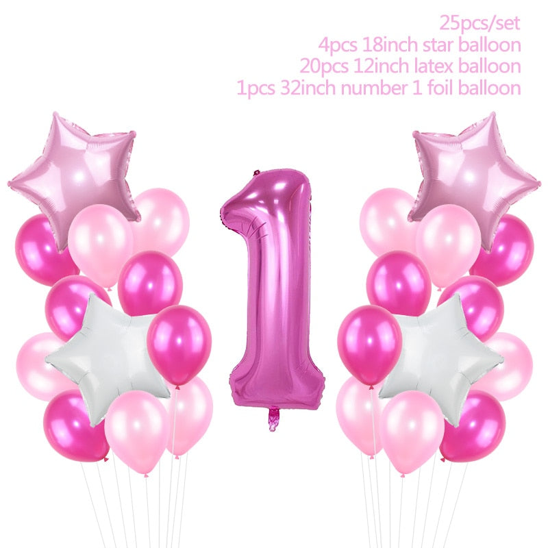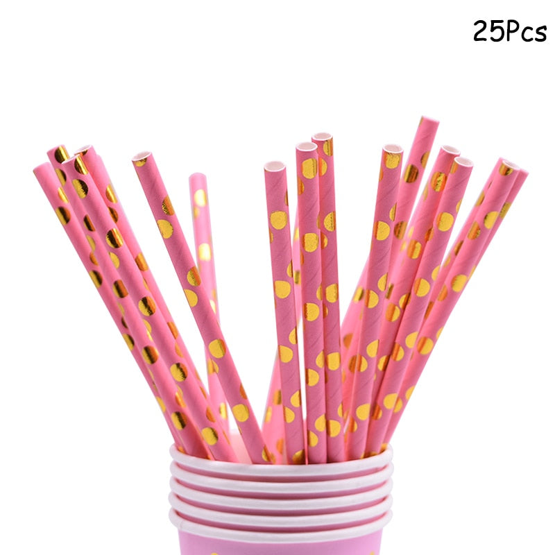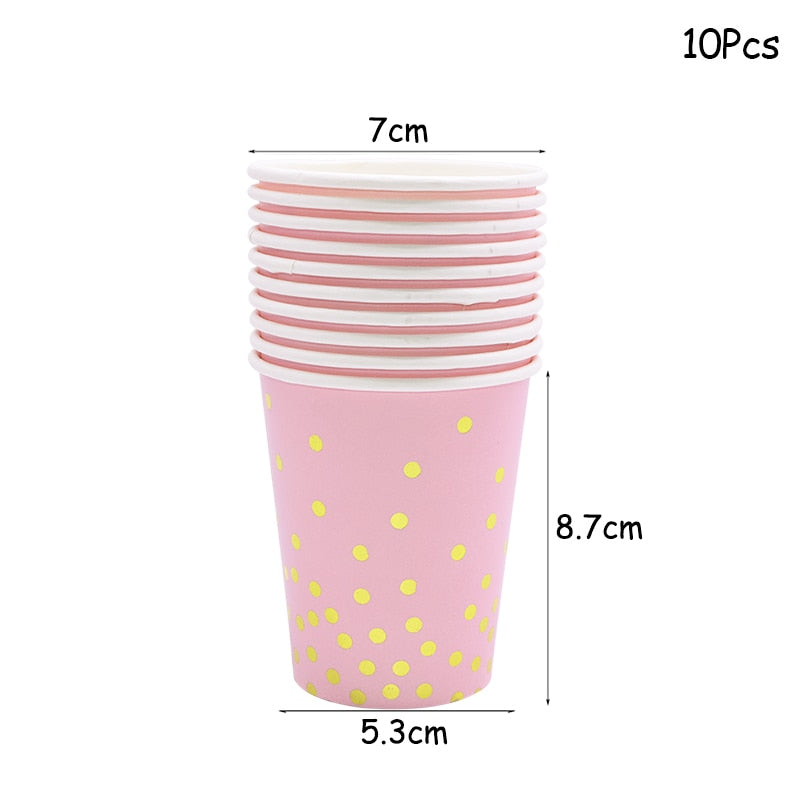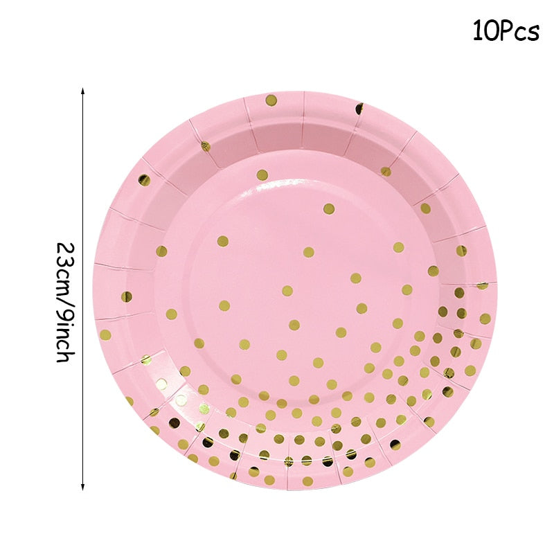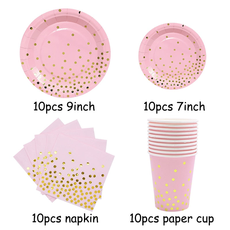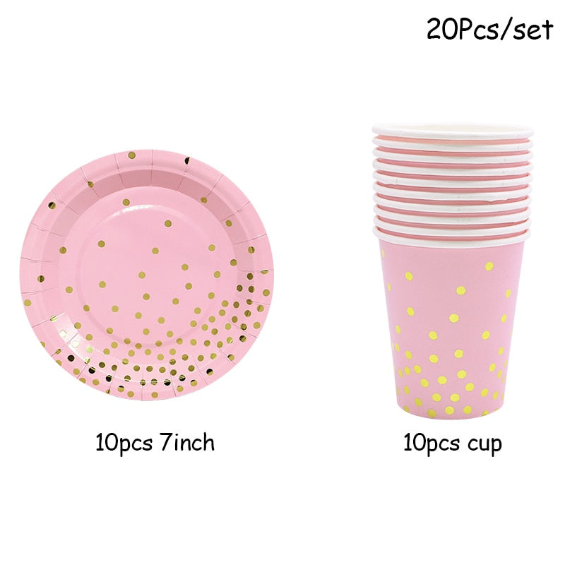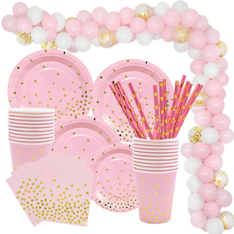 Gold Pink Disposable Tableware Set Paper Plates Cup Napkin Baby 1st Birthday Party Decor Baby Shower Girl Party Supplies Balloon