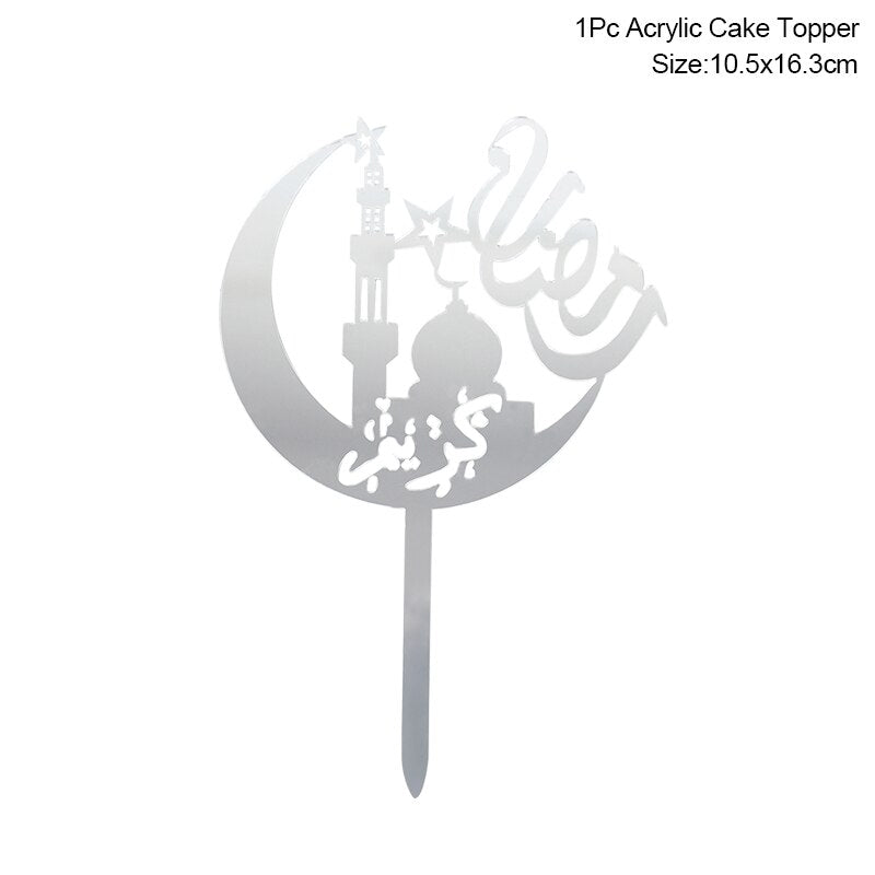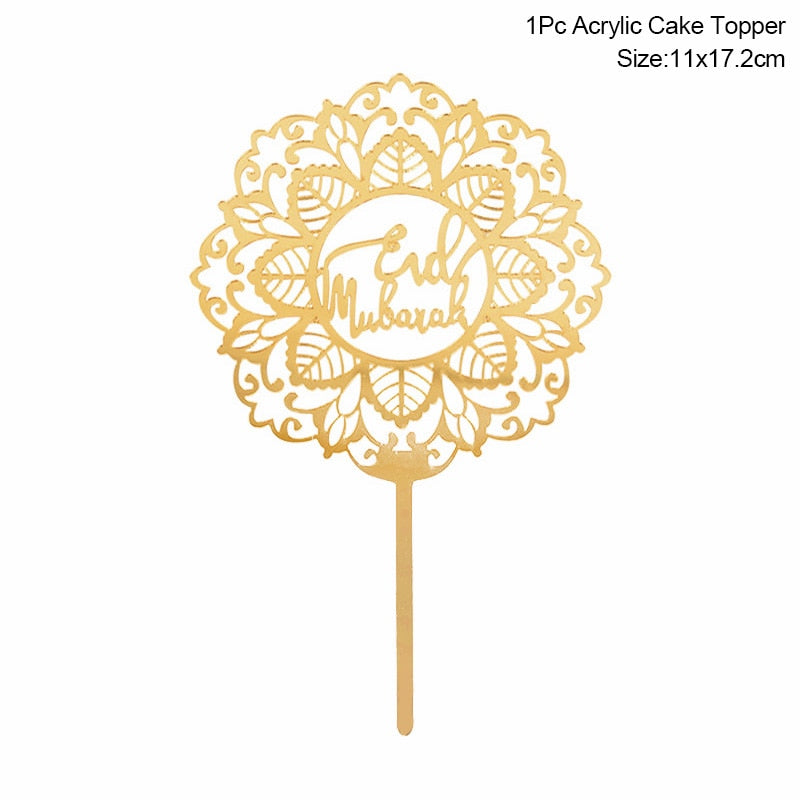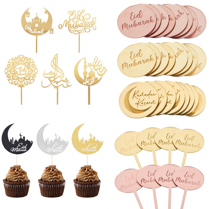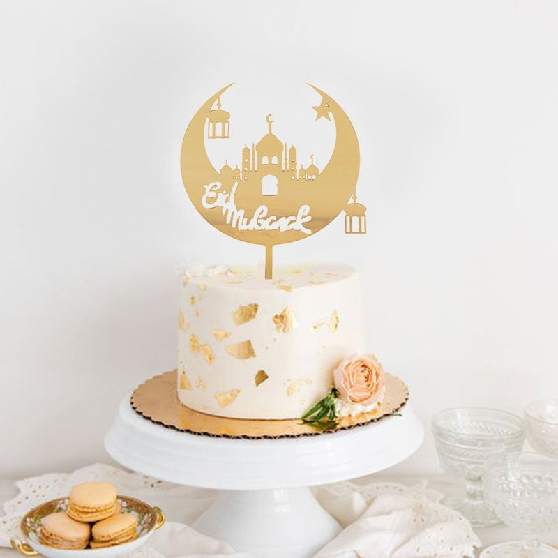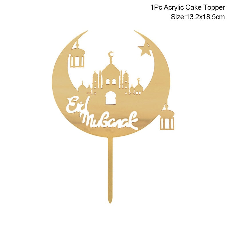 Golden Eid Mubarak Acrylic Cake Toppers Castle Moon CupCake Topper for Ramadan Islamic Muslim Festival Party Cake DIY Decoration
