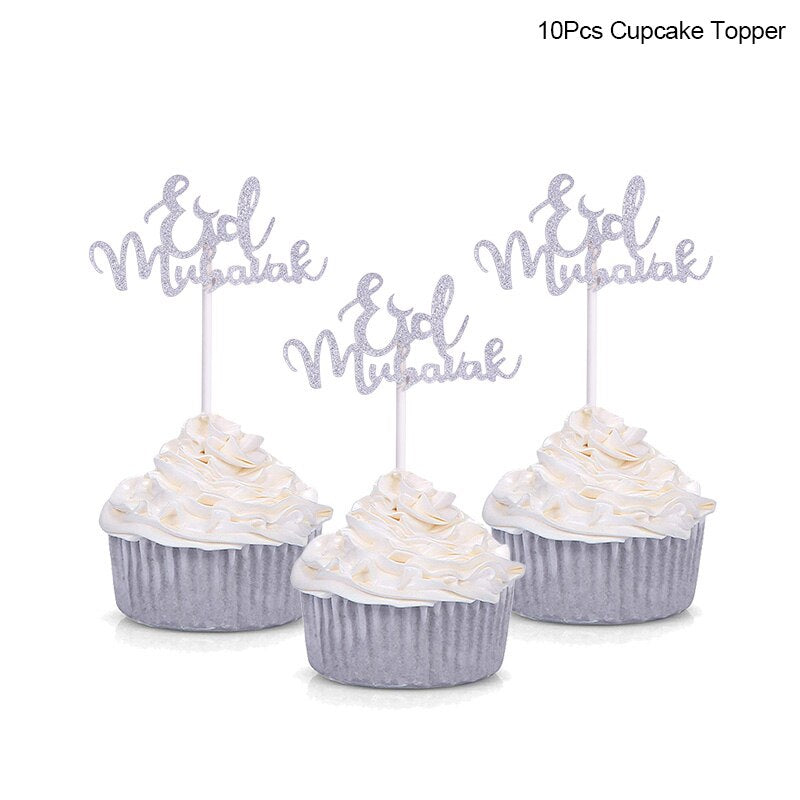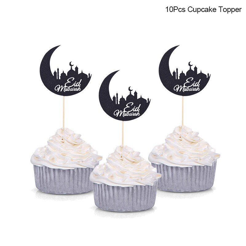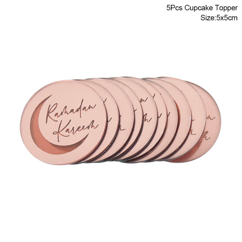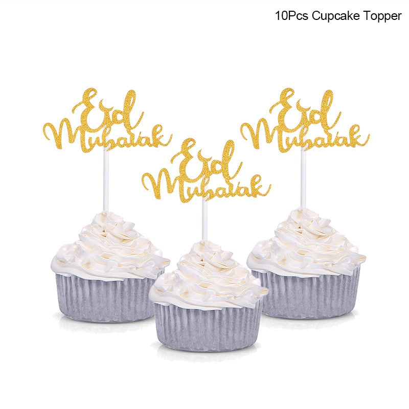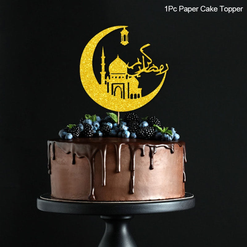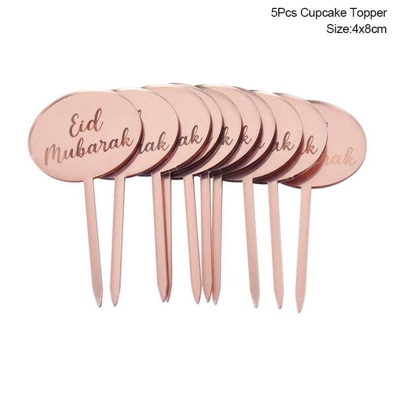 Golden Eid Mubarak Acrylic Cake Toppers Castle Moon CupCake Topper for Ramadan Islamic Muslim Festival Party Cake DIY Decoration