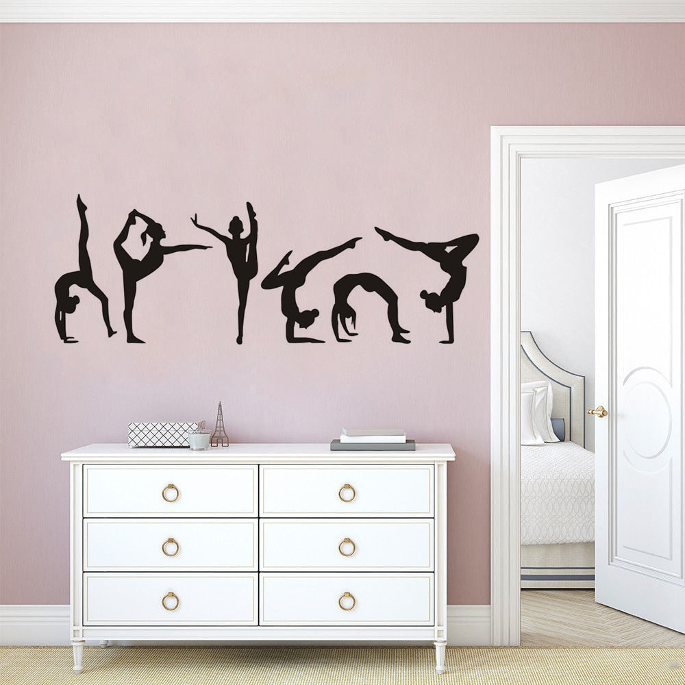 Gymnastics Girls Wall Sticker Six Dance Girls Silhouette Vinyl Wall Decal Gym Studio Decoration Removable Sport Wallpaper AZ107
