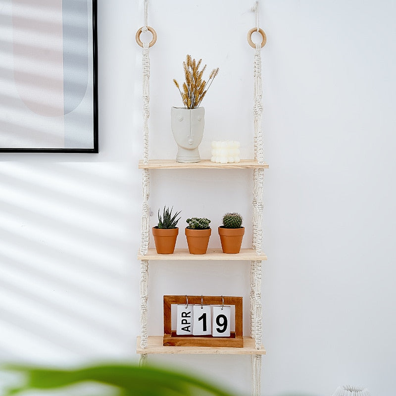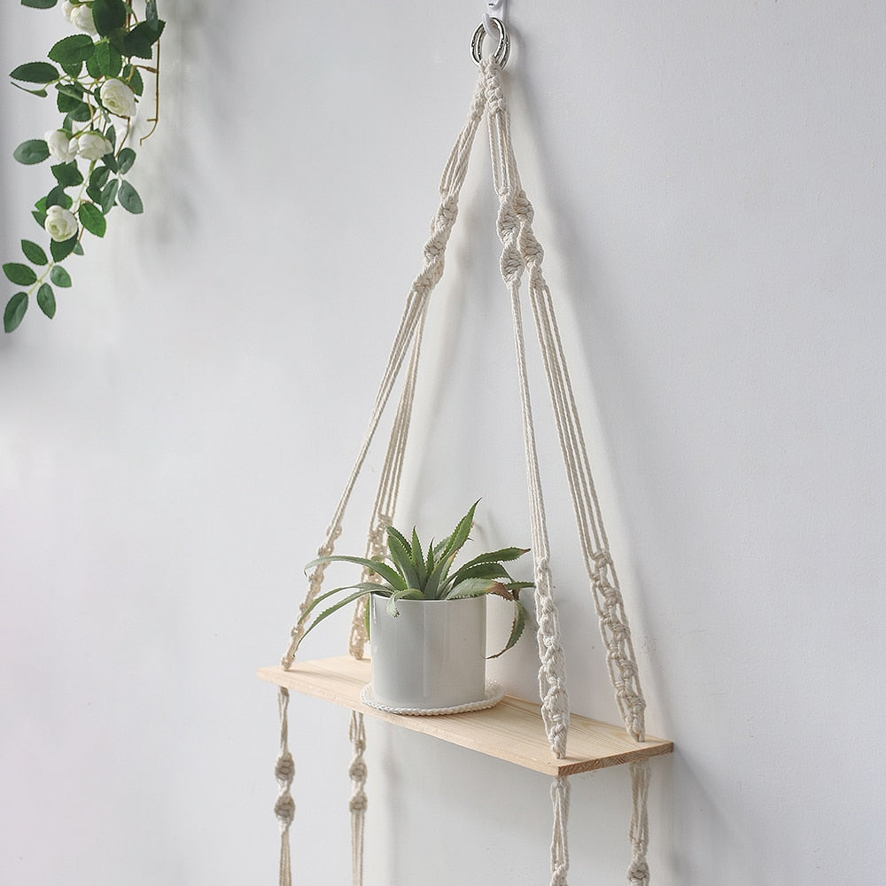 Hanging Shelves Wall Macrame Rope Wood, Swing Triangle Floating Shelf, Modern Boho Decor, Plant, Living Room, Bedroom