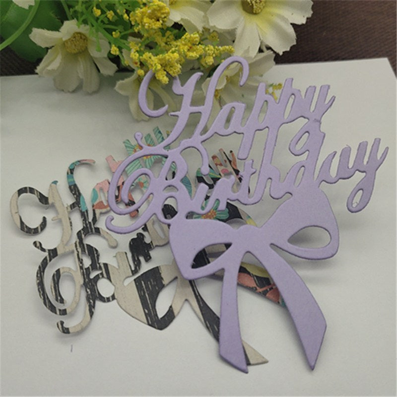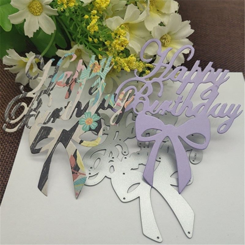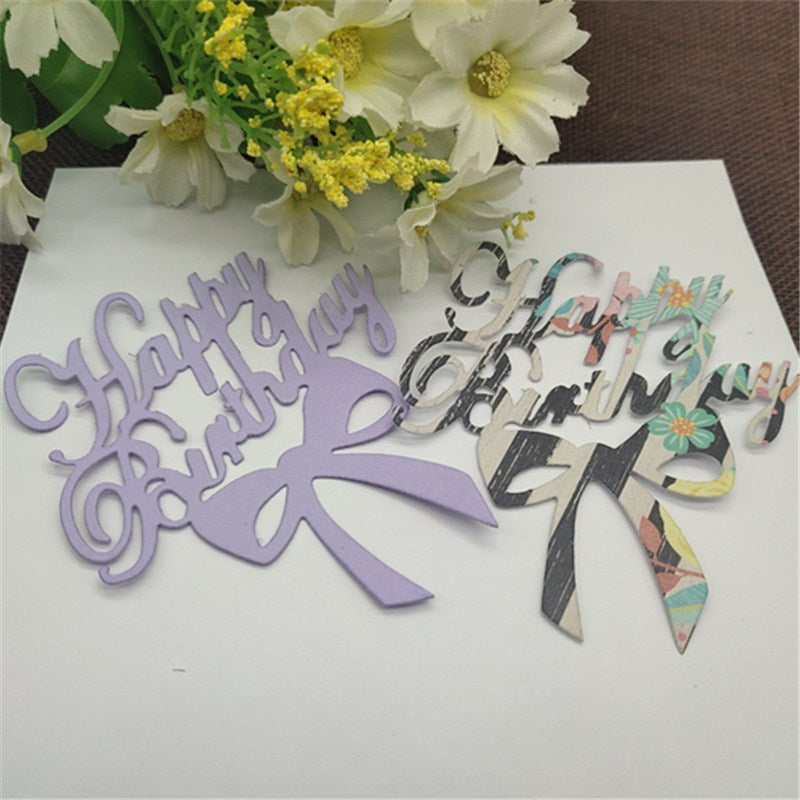 Happy birthday with bow Metal Cutting Dies Stencil Scrapbooking Photo Album Card Paper Embossing Craft DIY Die Cut