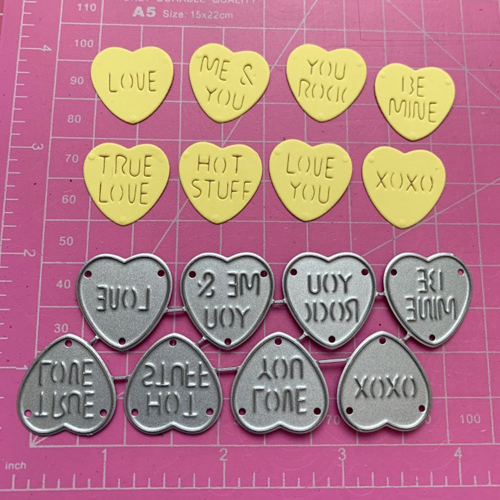 Heart Love Words Metal Cutting Die Peach heart characters Stencil Template for Scrapbooking Paper Album Card Gift Decor Die