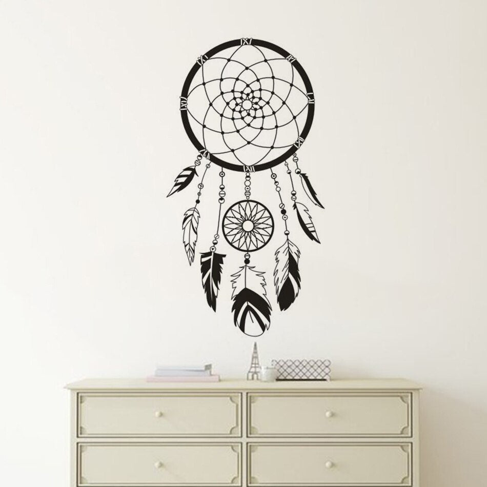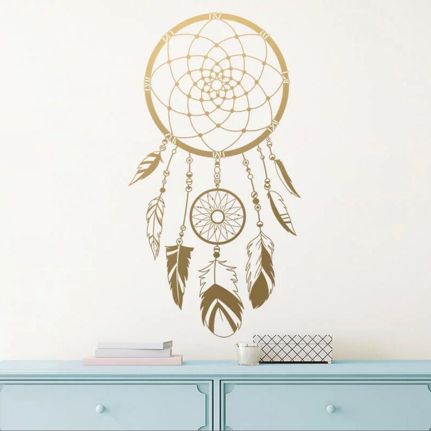 Home Bedroom Decoration Dream Catcher Pattern Vinyl Wall Art Sticker Boho Style Dreamcatcher With Feather Wall Decal Gift AZ485