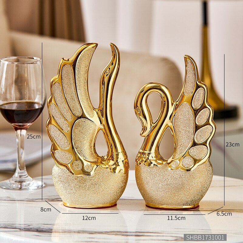 Home Decoration Accessories For Living Room Couple of Golden Swan Statues Ceramic Modern Office Desk Decor Sculptures Gifts 102