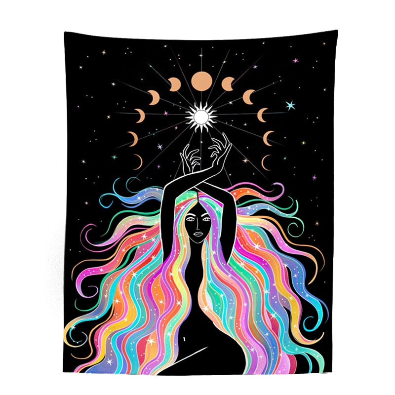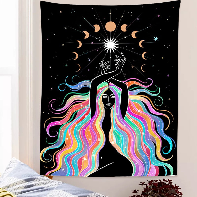 Indian Moon Phase Girl Mandala Tapestry Wall Hanging Boho decor macrame hippie Witchcraft Tapestry wall decoration cloth