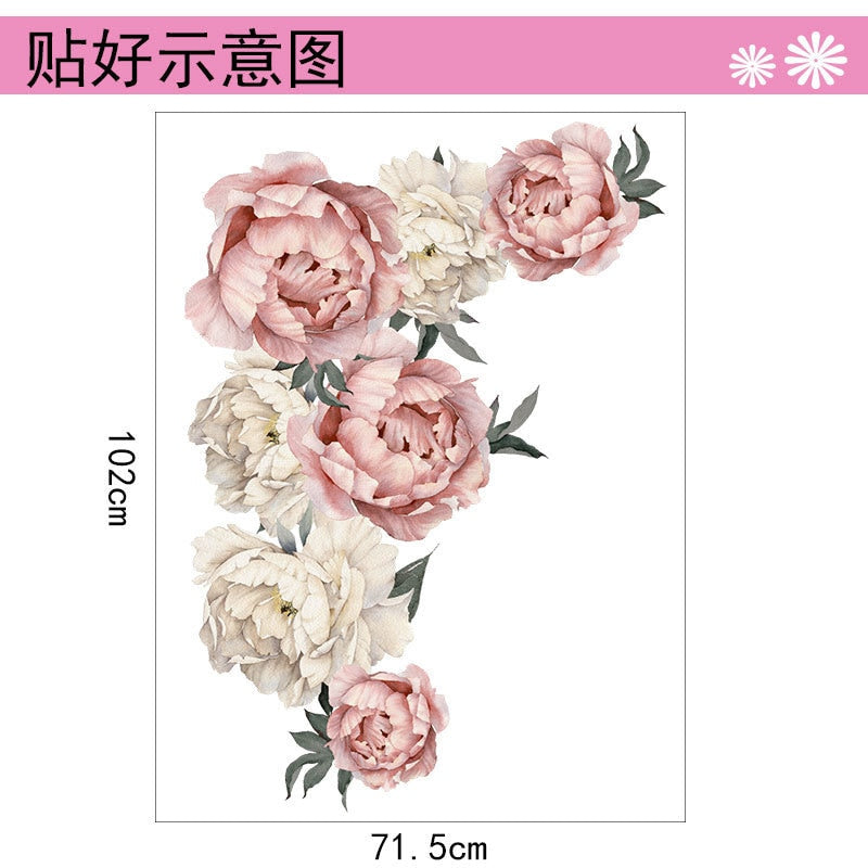 Large Pink Peony Flower Wall Stickers Romantic Flowers Home Decor for Bedroom Living Room DIY Vinyl Wall Decals