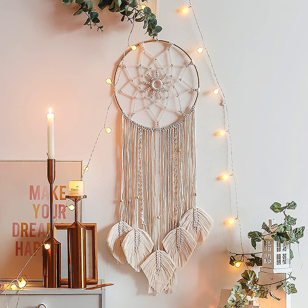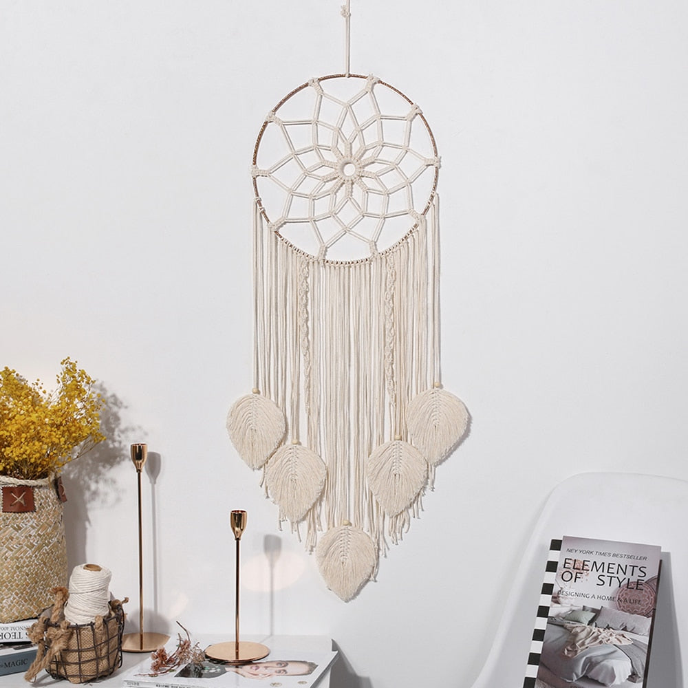 Leaf Macrame Dream Catcher Boho Macrame Wall Hanging Woven Tapestry Bohemian Wall Decor Room Decoration Farmhouse Dorm Room