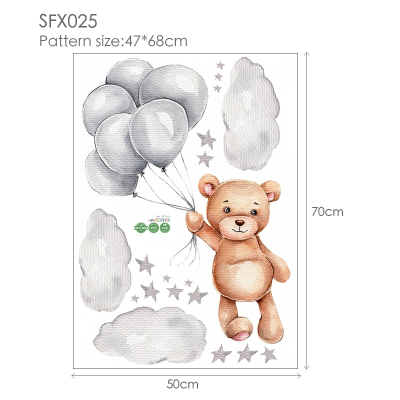 Lovely Bear with Ballon Bedroom Wall Stickers for Kids Rooms Girls Nursery Decoration Cloud Stars Viny Mural Stickers