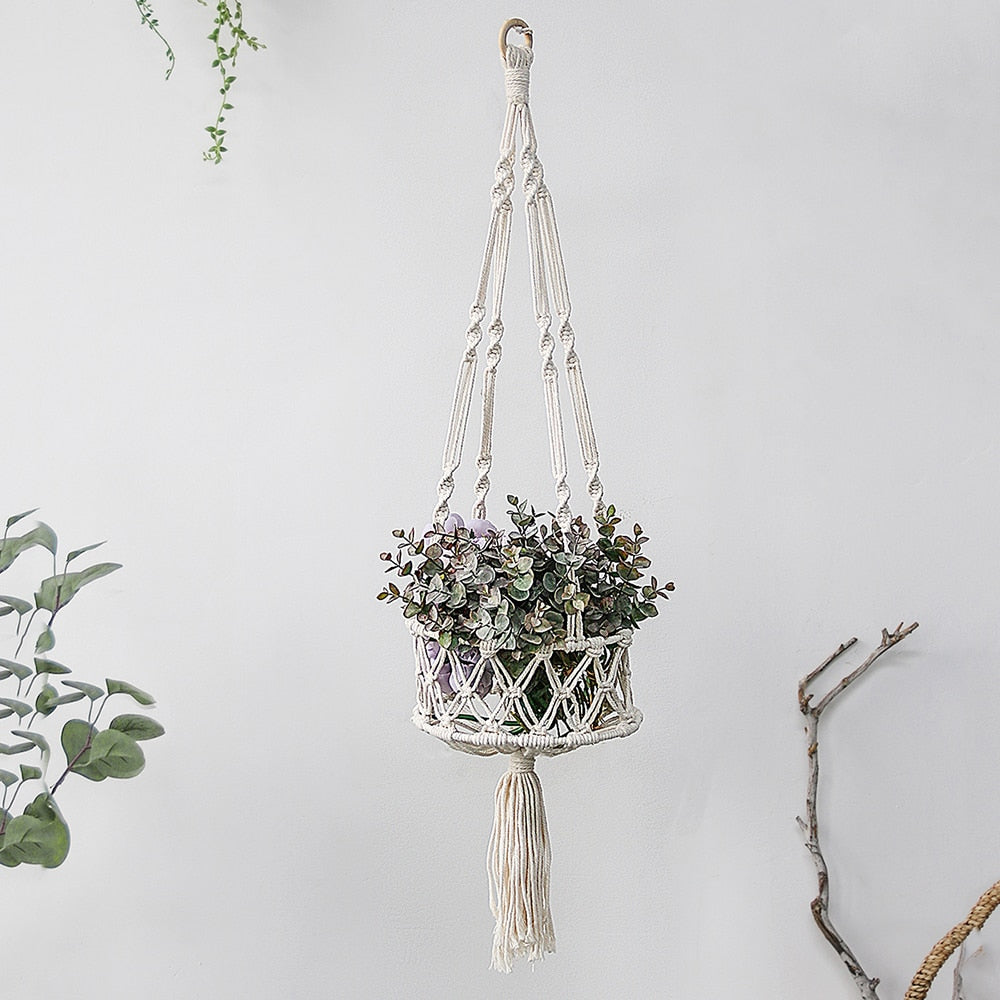 Macrame Plant Hangers Indoor Hanging Planter Basket with Wood Beads Decorative Flower Pot Holder No Tassels for Indoor Outdoor H