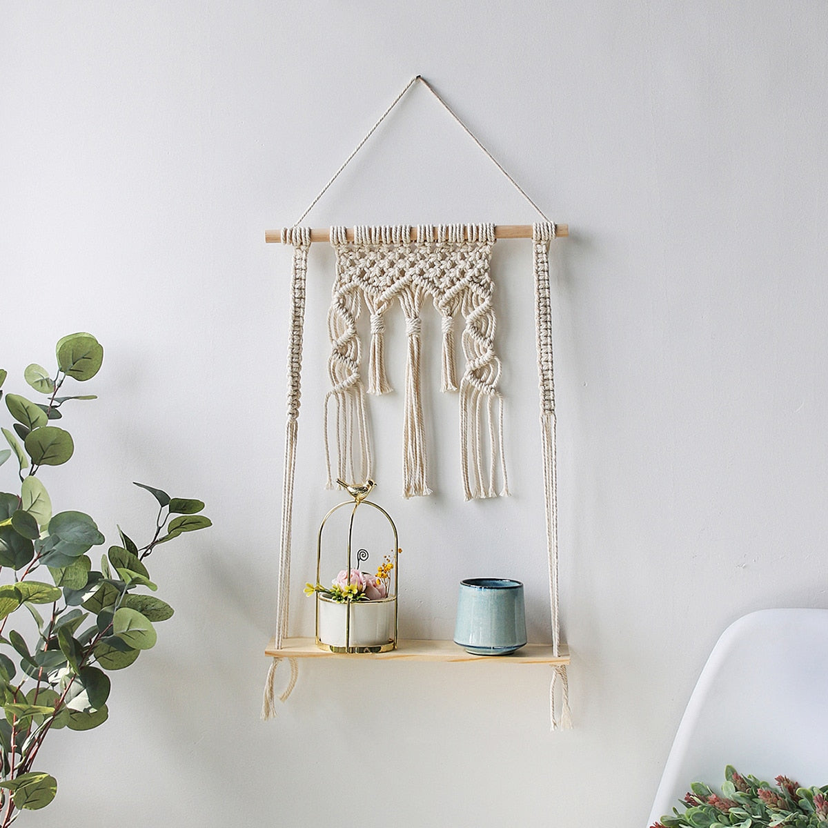 Macrame Wall Shelf Boho Home Decor Shelves On Wall Candle Holder Floating Shelf for Bedroom Wood Decoration Kids Shelving