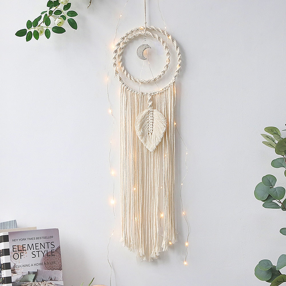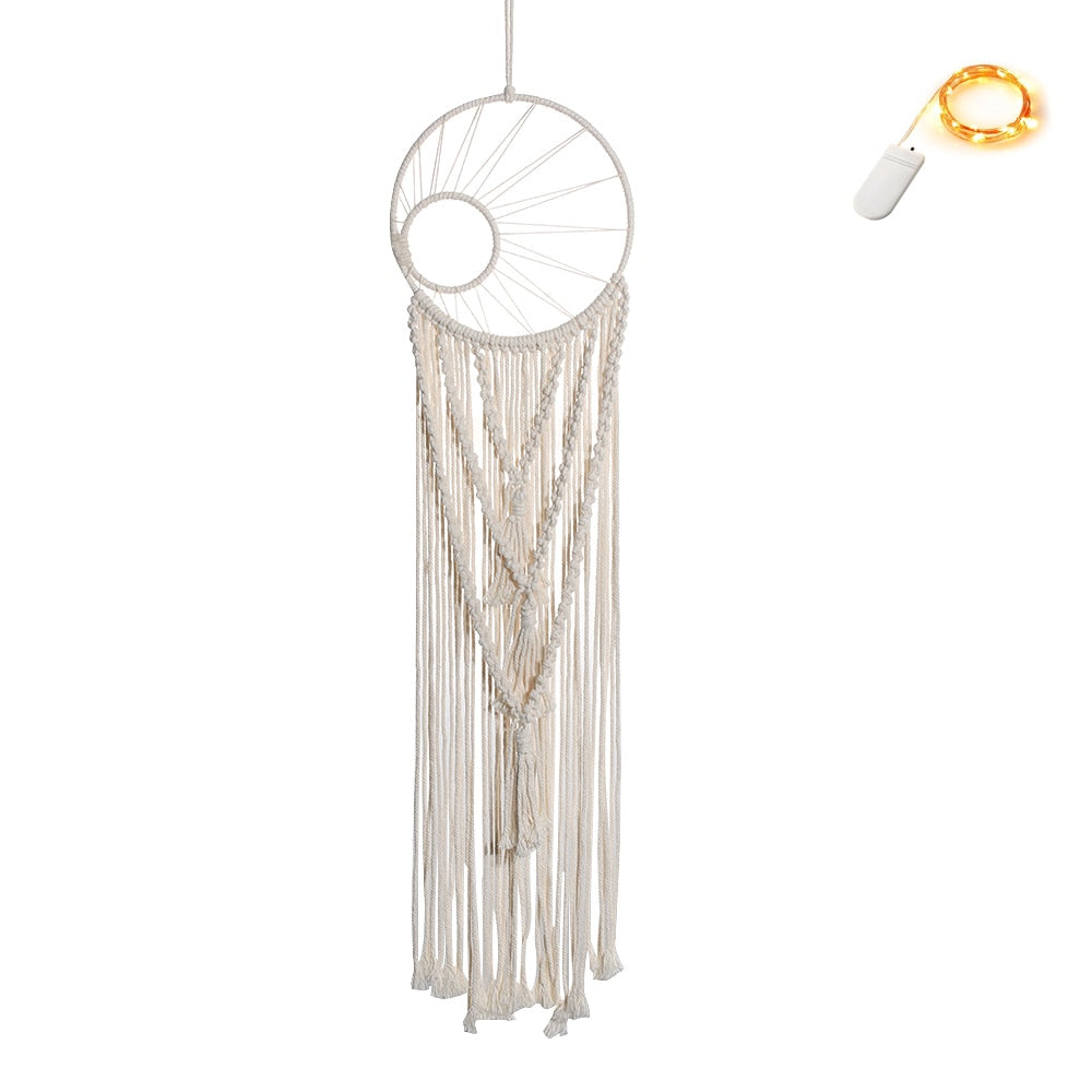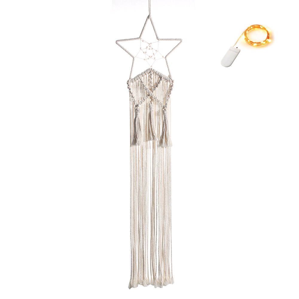 Moon Star Macrame Dream Catcher Wall Hanging Boho Room Decor Kids Girls Home Decoration With Led Light Gifts Dropshipping
