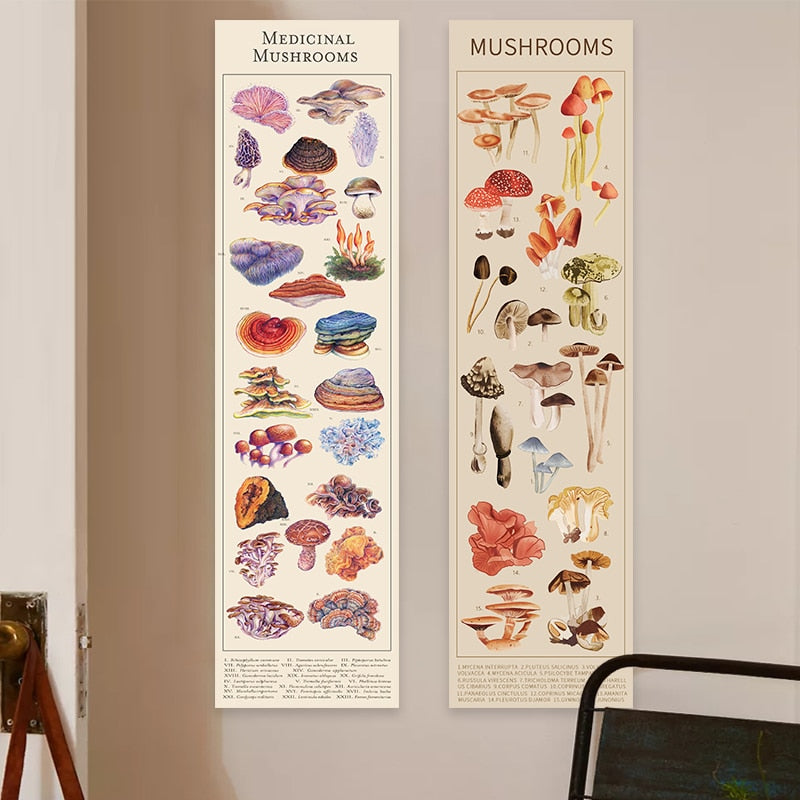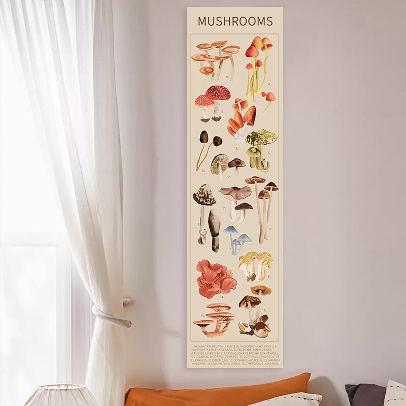 Mushroom Tapestry medicinal Mushroom Wall Hanging Vertical Tapestry Illustrative Reference Chart Tapestry Wall Hanging for Room