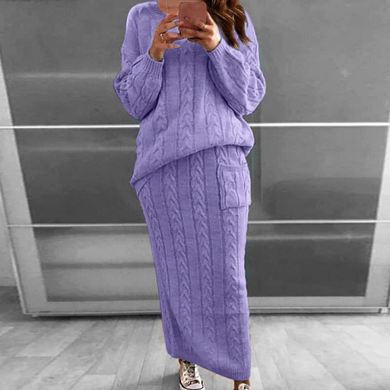 Muyogrt 2021 Autumn Women's Knitting Costume O-neck Solid Color Pullover Sweater+Slim Skirt Two Piece Set Knit Jumper Tracksuit