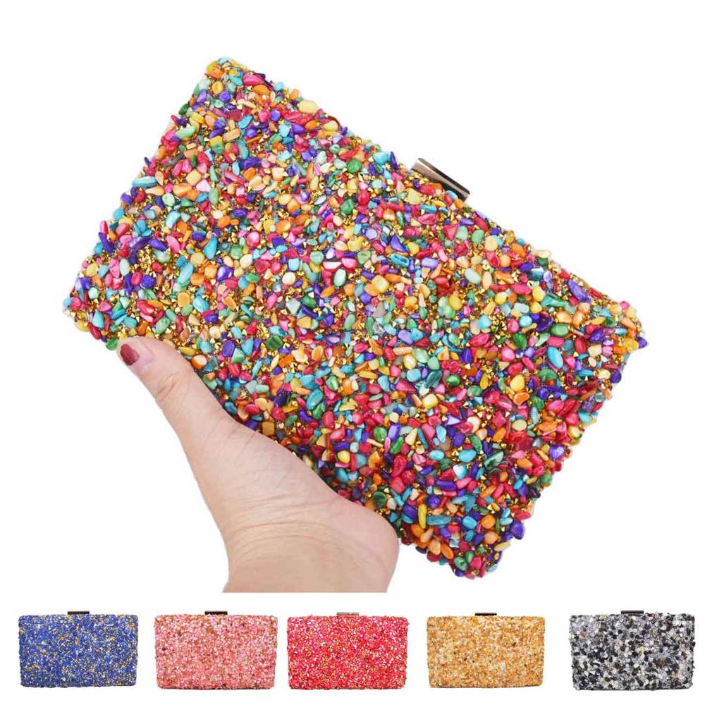 Newest Multicolor stones Clutch Bags Women Party Purse Evening Bags for Women Luxury Bridal Handbags Dropshipping