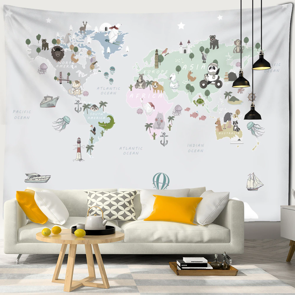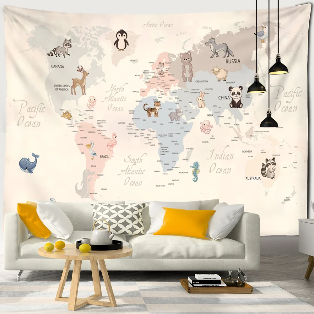 Nigikala Animals Distribution Map Tapestry Wall Hanging Simple Style Cute Hippie Children Kawaii Room Home Decor