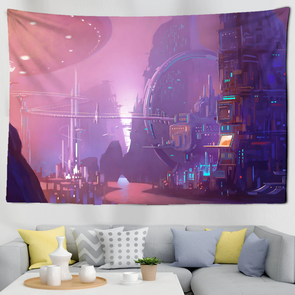 Nigikala Future Steam City Tapestry Art Home Psychedelic Galaxy Hanging Wall Tapestry Hippie Retro Home Decor