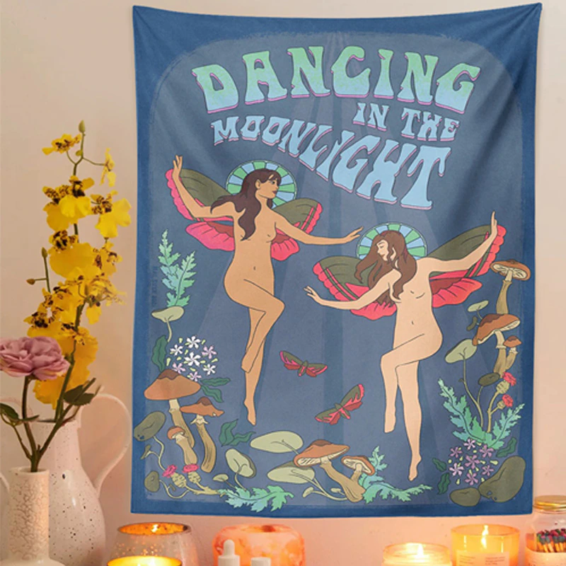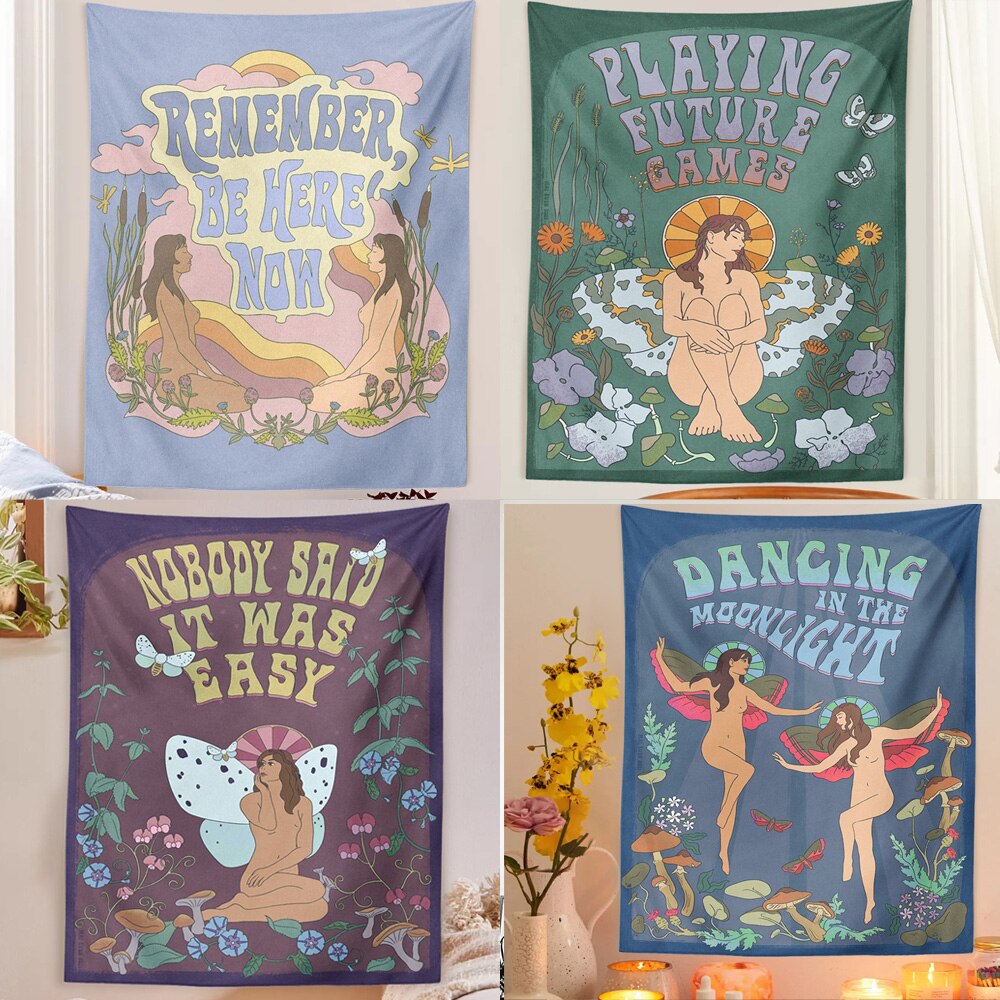 Nigikala girl Tapestry Wall Hanging mushroom woman 70s 60s Retro flowers Decoration Rainbow INS Trippy Psychedelic Wall Decor