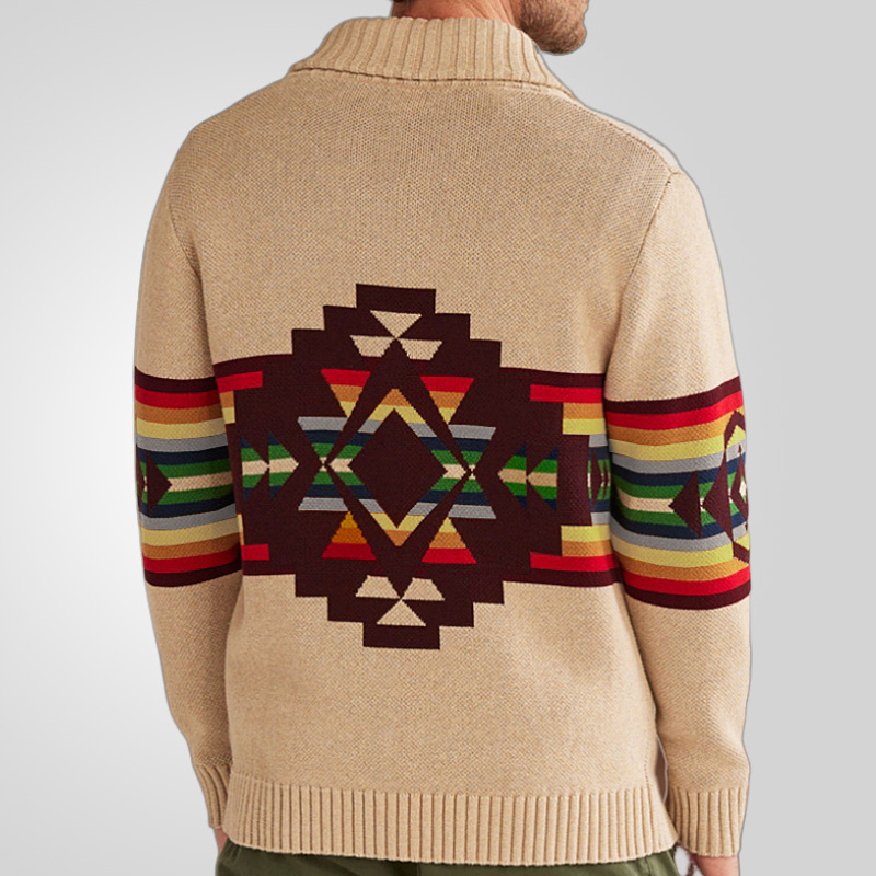 Nigikala Men's Autumn And Winter New Striped Braided Sweater Collar Plus Thick Coat SY0202