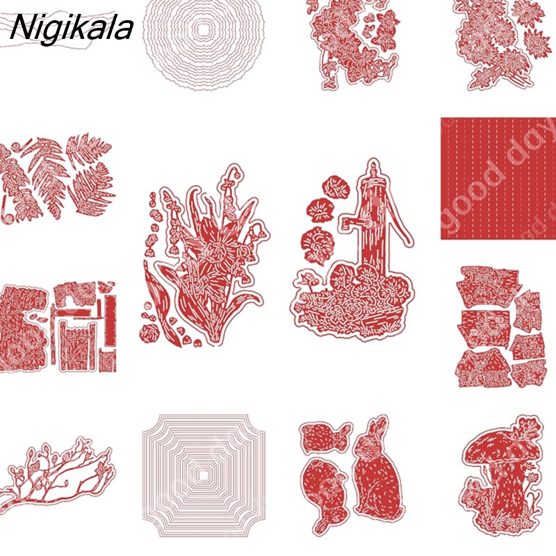 Nigikala New Arrival Bunny Mushroom Flowers Metal Cutting Dies Scrapbook Diary Decoration Embossing Template Diy Card Handmade